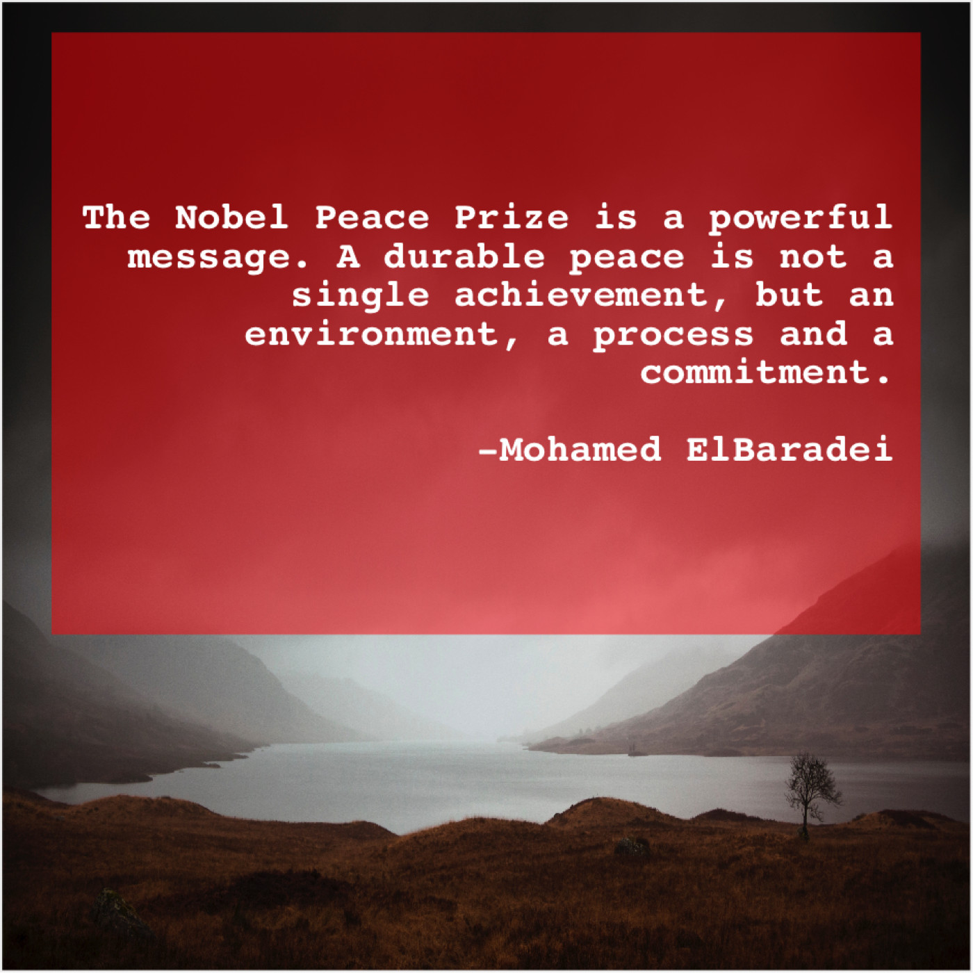 “The Nobel Peace Prize is a powerful message. A durable peace is not a single achievement, but an environment, a process and a commitment.”