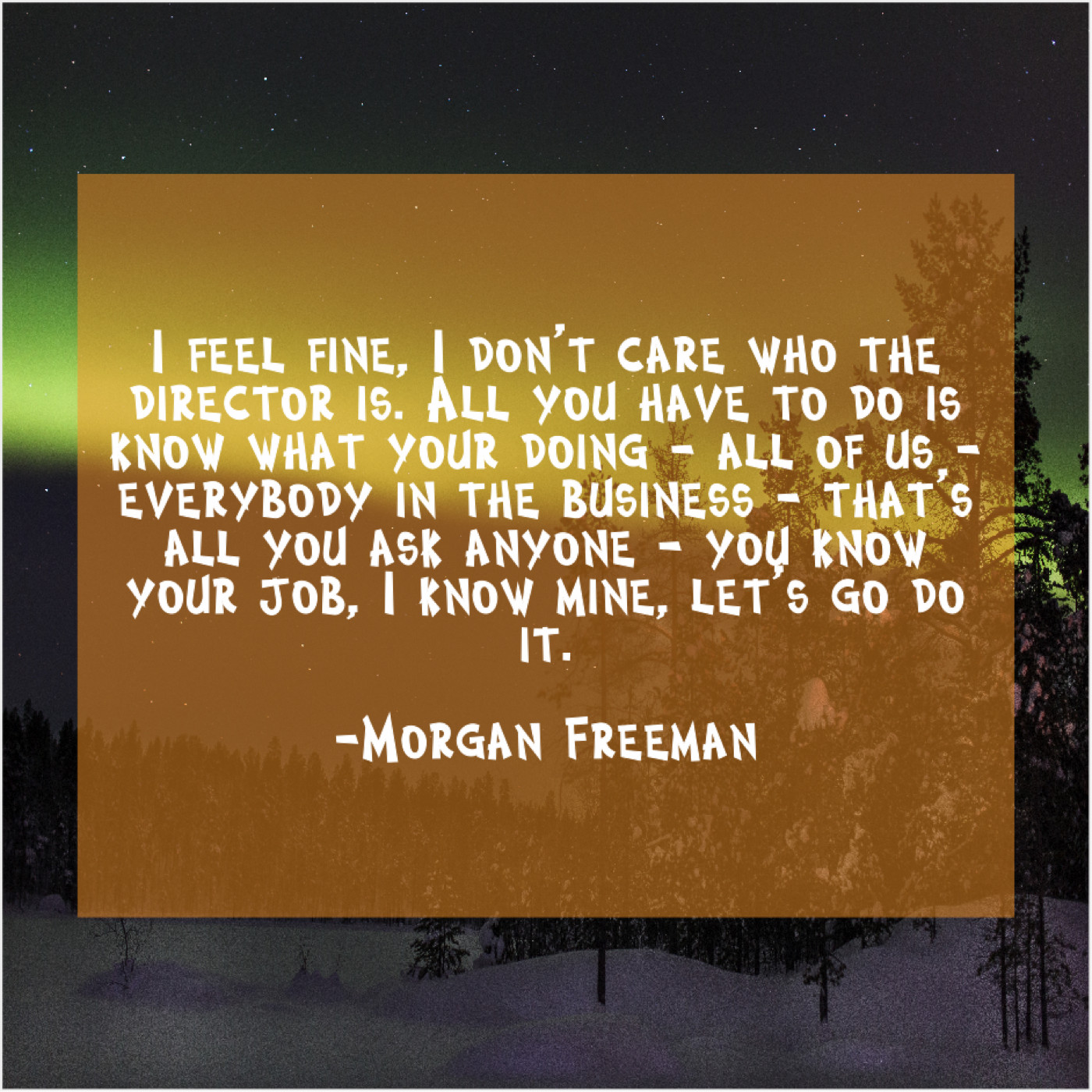Morgan Freeman Morgan Freeman – I feel fine, I don’t… January 3, 2019 admin “I feel fine, I don’t care who the director is. All you have to do is know what your doing – all of us – everybody in the business – that’s all you ask anyone – you know your job, I know mine, let’s go do it.”-Morgan Freeman