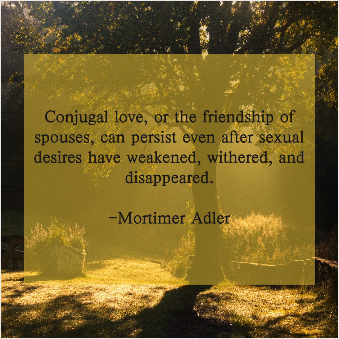 Mortimer Adler Mortimer Adler – Conjugal love, or the friendship… December 3, 2018 admin “Conjugal love, or the friendship of spouses, can persist even after sexual desires have weakened, withered, and disappeared.”-Mortimer Adler
