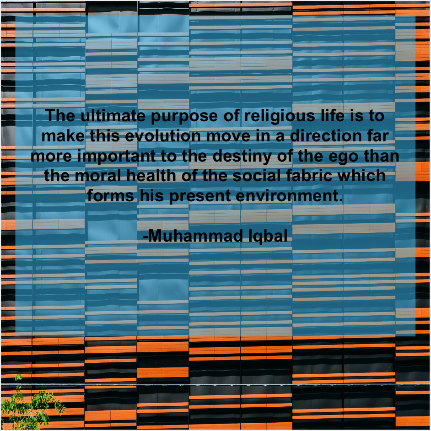 Muhammad Iqbal Muhammad Iqbal – The ultimate purpose of religious… January 2, 2019 admin “The ultimate purpose of religious life is to make this evolution move in a direction far more important to the destiny of the ego than the moral health of the social fabric which forms his present environment.”-Muhammad Iqbal
