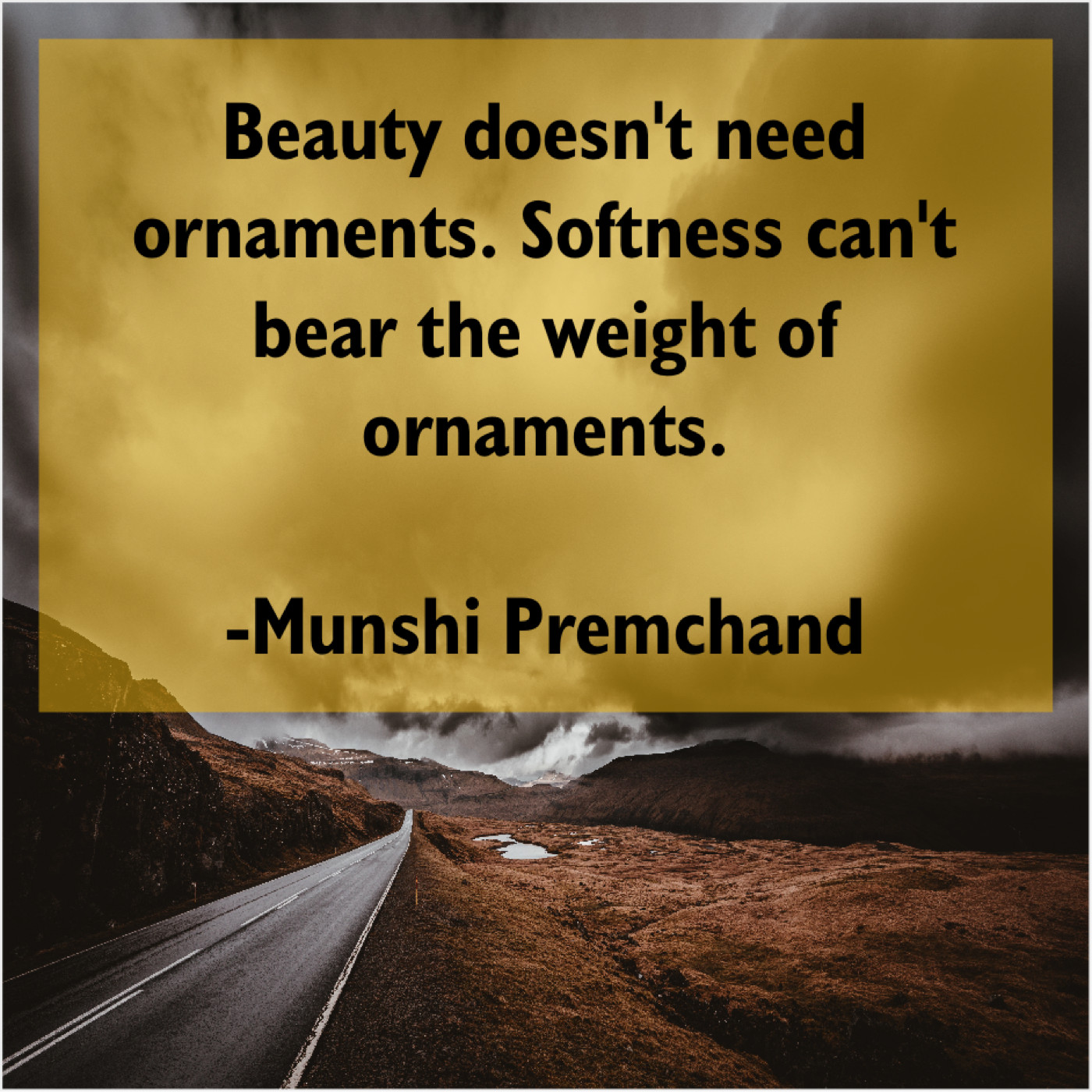 Munshi Premchand Munshi Premchand – Beauty doesn’t need ornaments. Softness… January 2, 2019 admin “Beauty doesn’t need ornaments. Softness can’t bear the weight of ornaments.”-Munshi Premchand