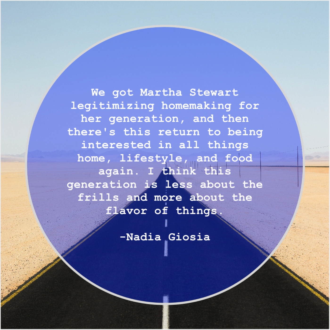 “We got Martha Stewart legitimizing homemaking for her generation, and then there’s this return to being interested in all things home, lifestyle, and food again. I think this generation is less about the frills and more about the flavor of things.”