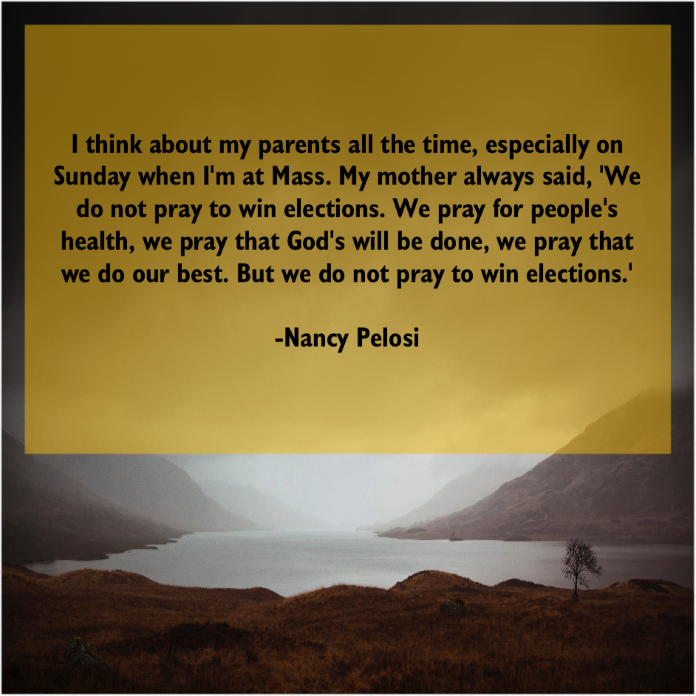 “I think about my parents all the time, especially on Sunday when I’m at Mass. My mother always said, ‘We do not pray to win elections. We pray for people’s health, we pray that God’s will be done, we pray that we do our best. But we do not pray to win elections.'”