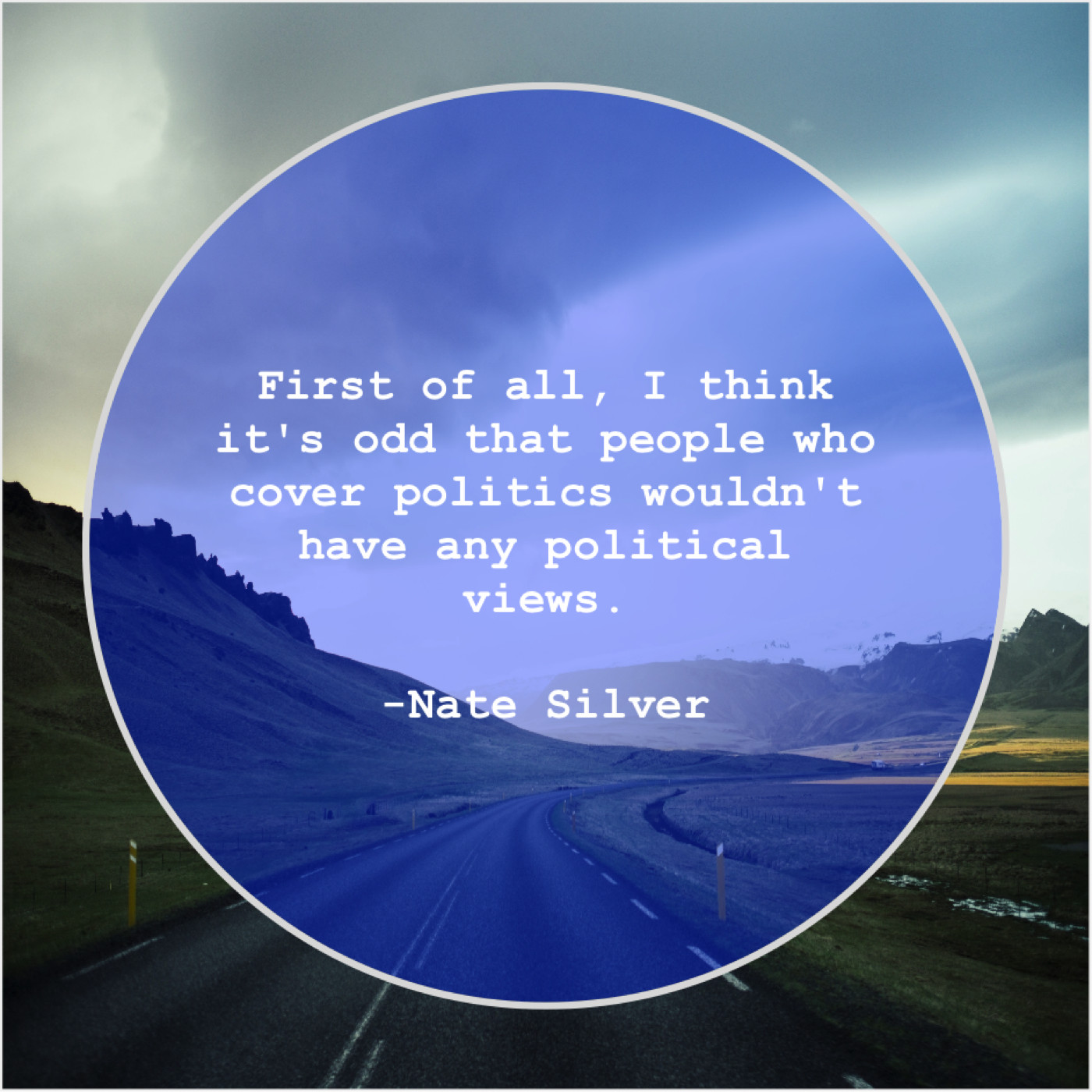 Nate Silver Nate Silver – First of all, I think… September 28, 2019 admin “First of all, I think it’s odd that people who cover politics wouldn’t have any political views.”-Nate Silver