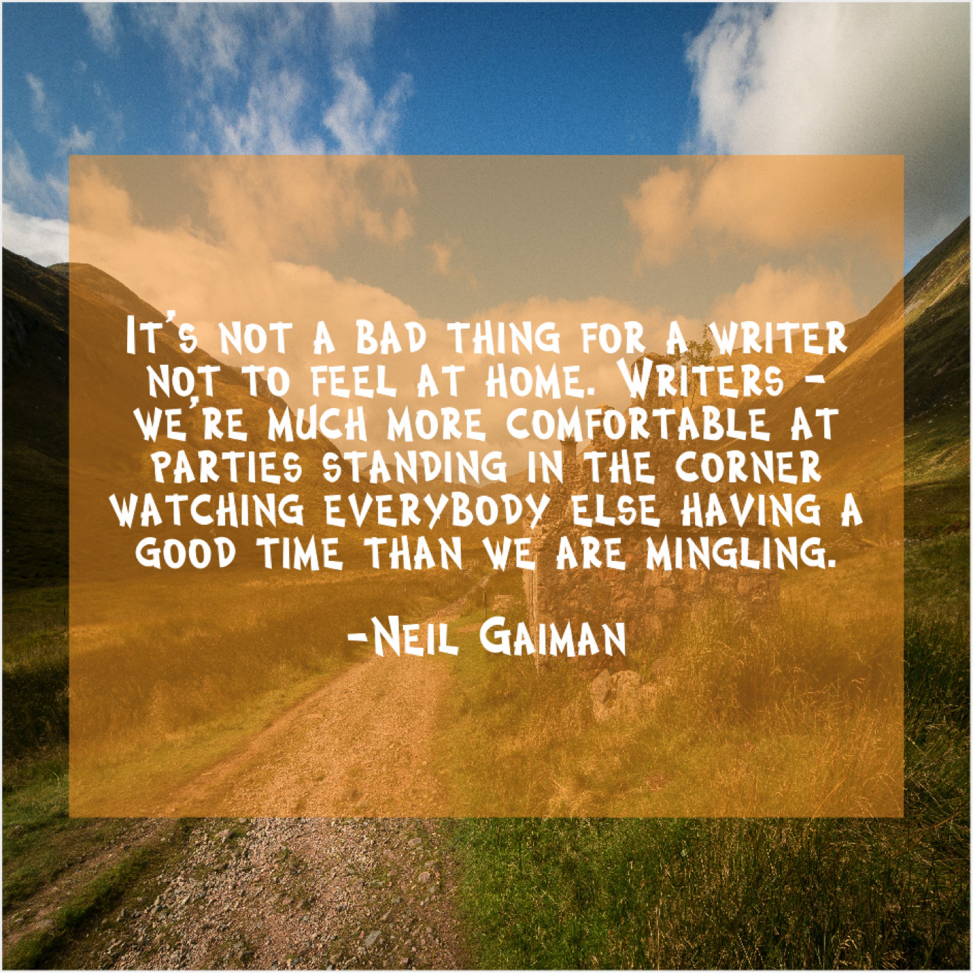 Neil Gaiman Neil Gaiman – It’s not a bad thing… October 12, 2019 admin “It’s not a bad thing for a writer not to feel at home. Writers – we’re much more comfortable at parties standing in the corner watching everybody else having a good time than we are mingling.”-Neil Gaiman