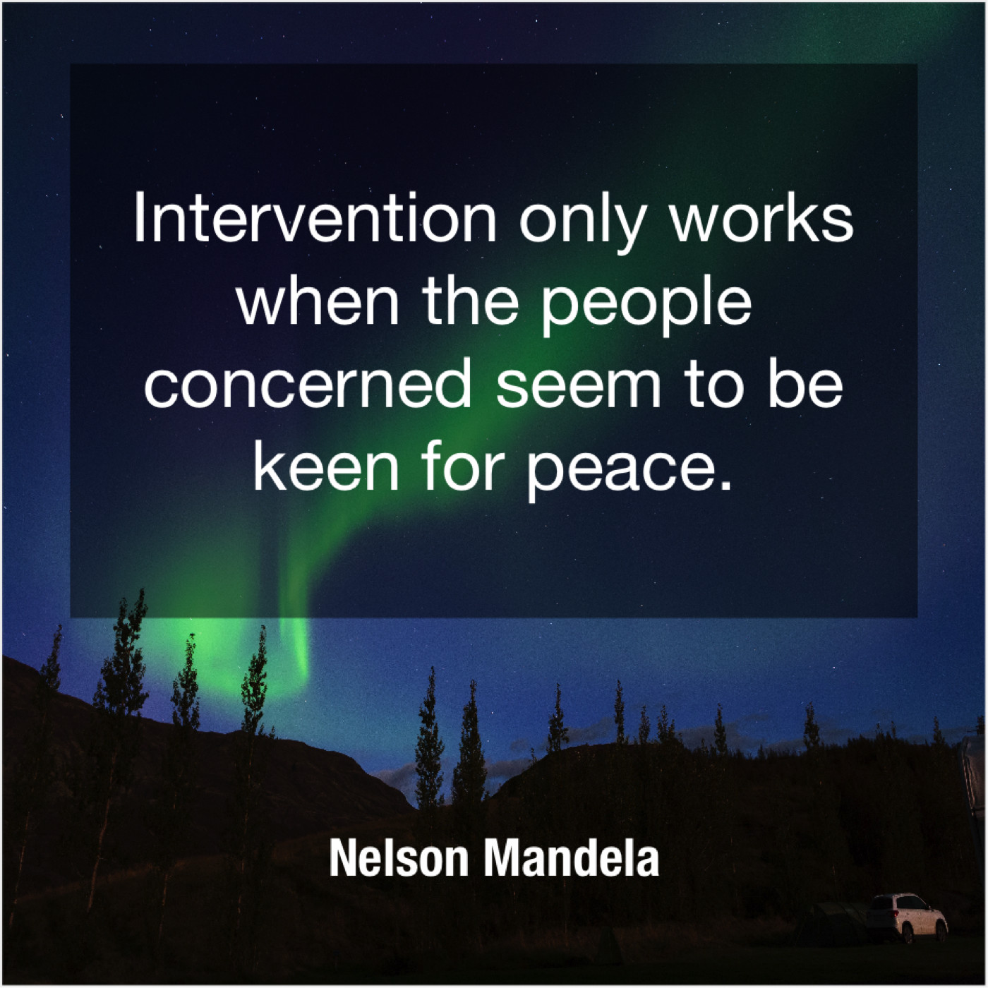 Nelson Mandela Nelson Mandela – Intervention only works when the… February 26, 2019 admin “Intervention only works when the people concerned seem to be keen for peace.”-Nelson Mandela