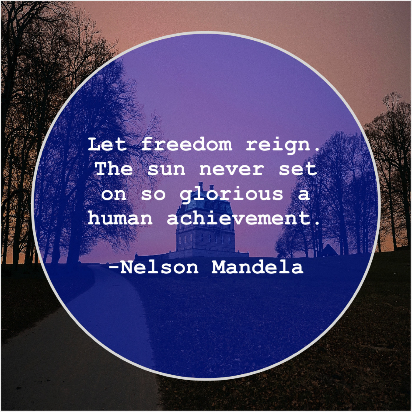 Nelson Mandela Nelson Mandela – Let freedom reign. The sun… January 3, 2019 admin “Let freedom reign. The sun never set on so glorious a human achievement.”-Nelson Mandela