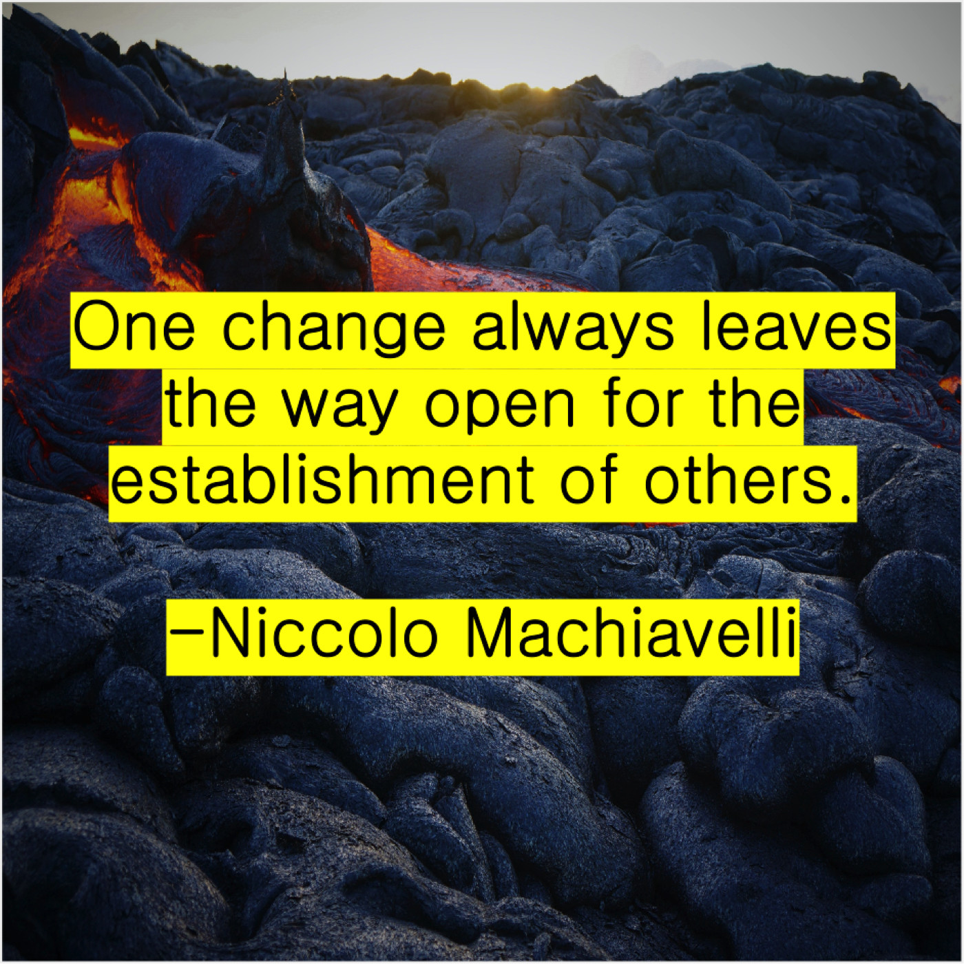 Niccolo Machiavelli Niccolo Machiavelli – One change always leaves the… June 20, 2019 admin “One change always leaves the way open for the establishment of others.”-Niccolo Machiavelli