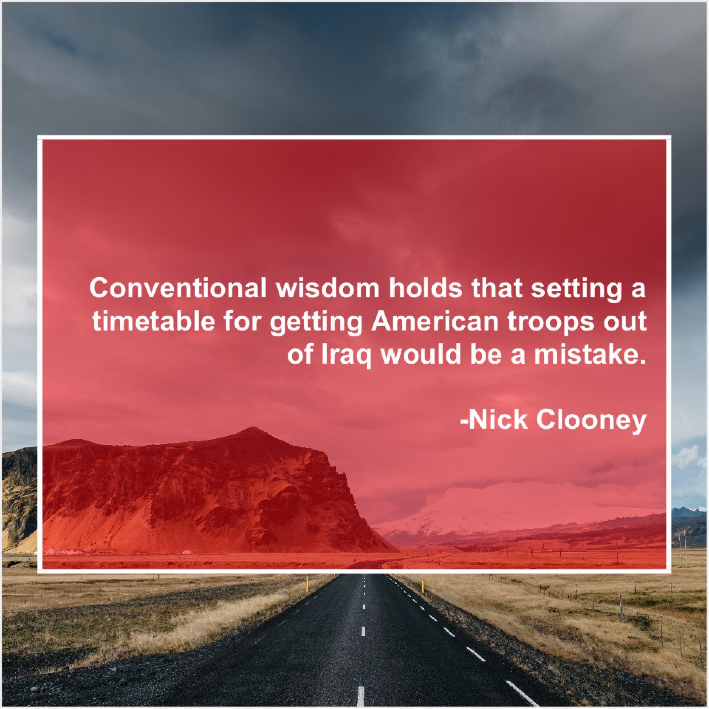 Nick Clooney Nick Clooney – Conventional wisdom holds that setting… May 13, 2019 admin “Conventional wisdom holds that setting a timetable for getting American troops out of Iraq would be a mistake.”-Nick Clooney