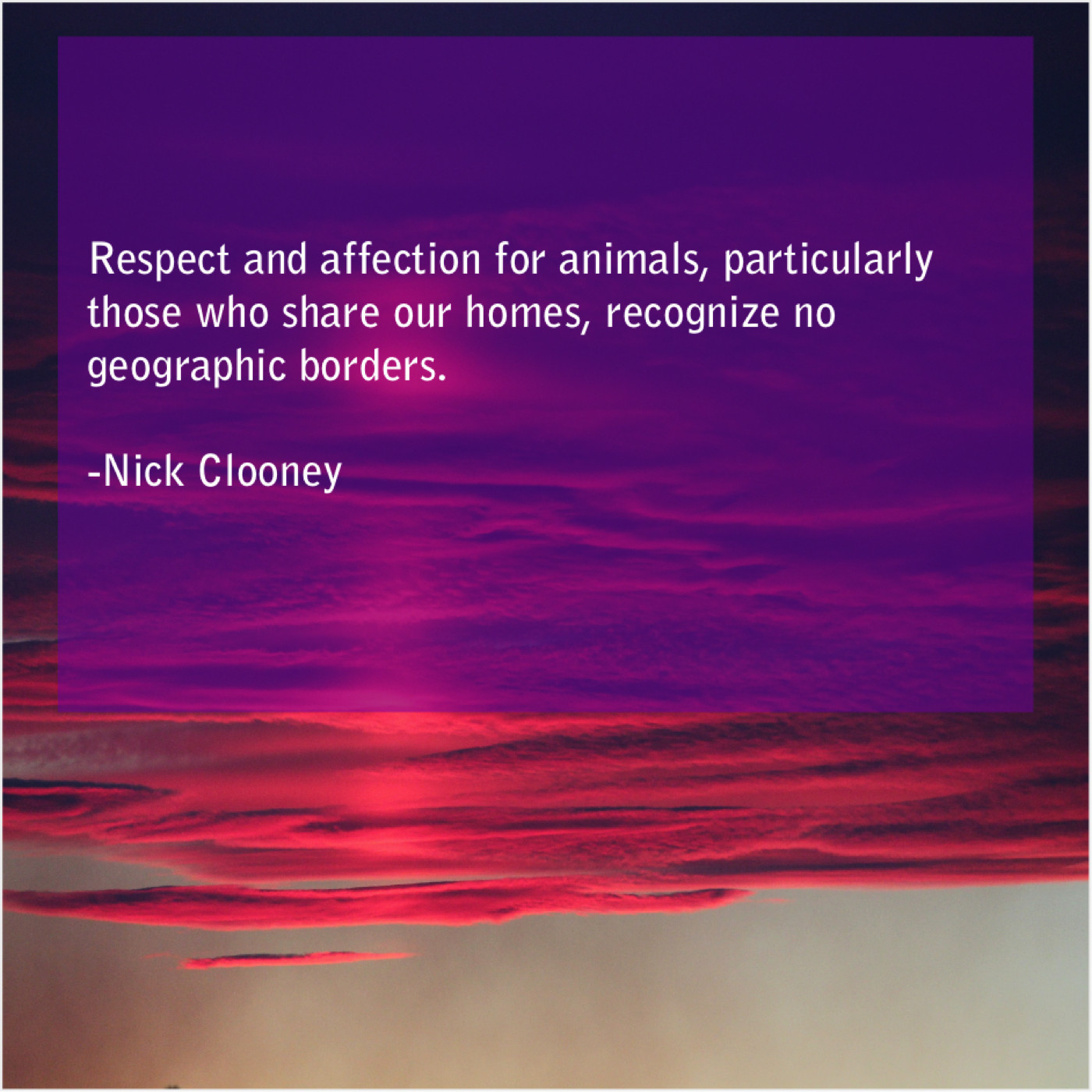 Nick Clooney Nick Clooney – Respect and affection for animals… September 17, 2019 admin “Respect and affection for animals, particularly those who share our homes, recognize no geographic borders.”-Nick Clooney
