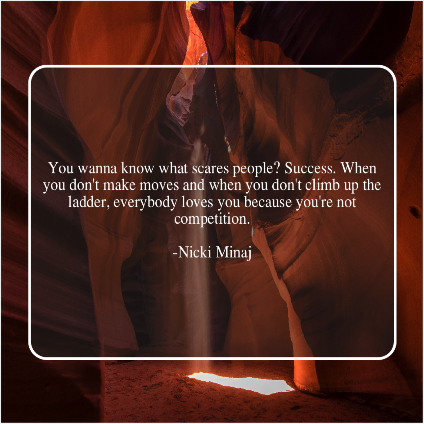 Nicki Minaj Nicki Minaj – You wanna know what scares… August 12, 2019 admin “You wanna know what scares people? Success. When you don’t make moves and when you don’t climb up the ladder, everybody loves you because you’re not competition.”-Nicki Minaj