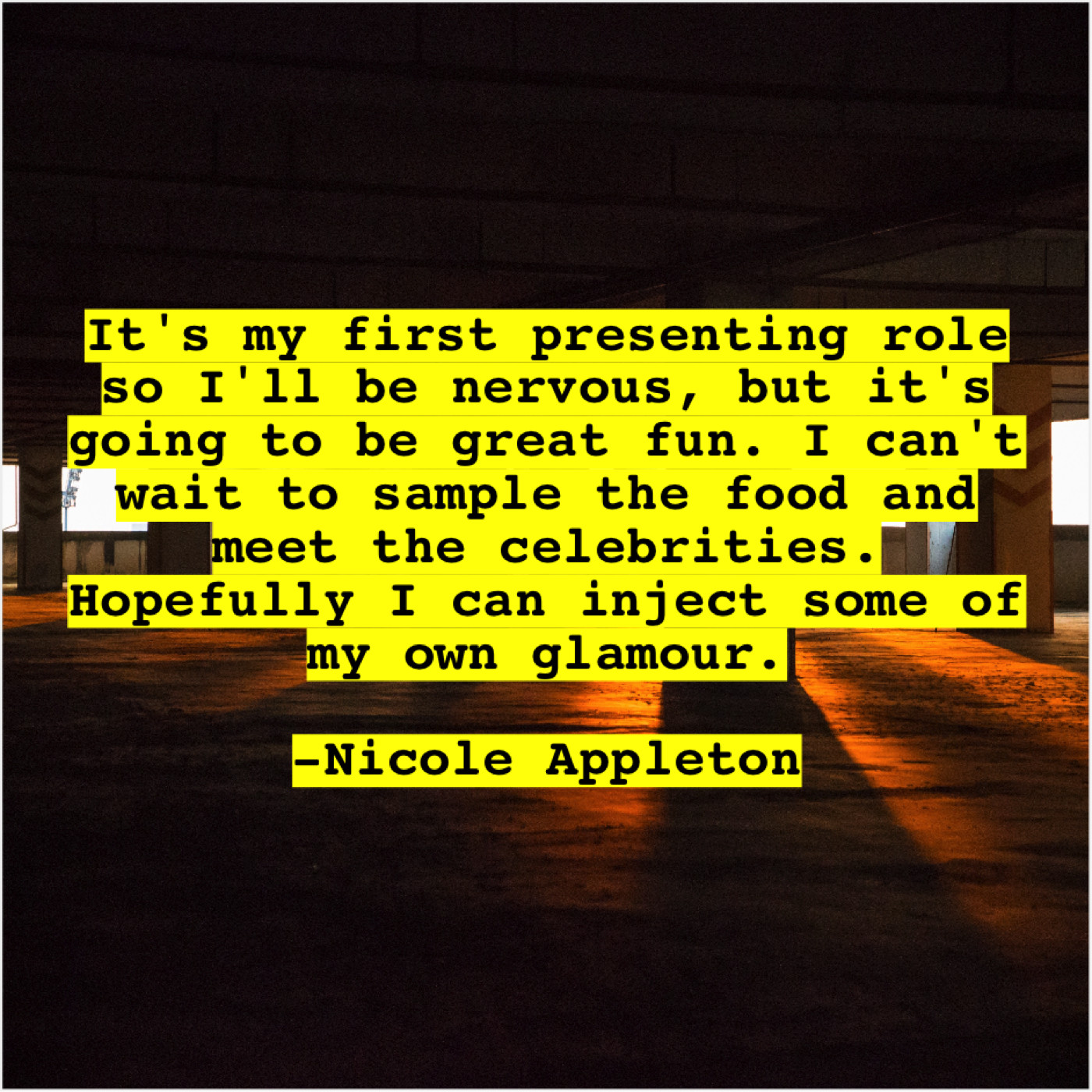 Nicole Appleton Nicole Appleton – It’s my first presenting role… September 18, 2019 admin “It’s my first presenting role so I’ll be nervous, but it’s going to be great fun. I can’t wait to sample the food and meet the celebrities. Hopefully I can inject some of my own glamour.”-Nicole Appleton