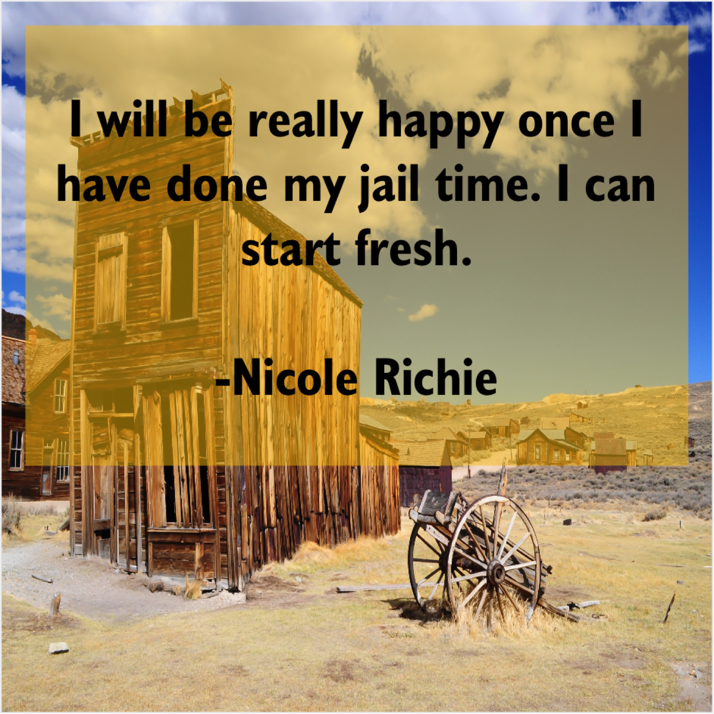 Nicole Richie Nicole Richie – I will be really happy… July 29, 2019 admin “I will be really happy once I have done my jail time. I can start fresh.”-Nicole Richie