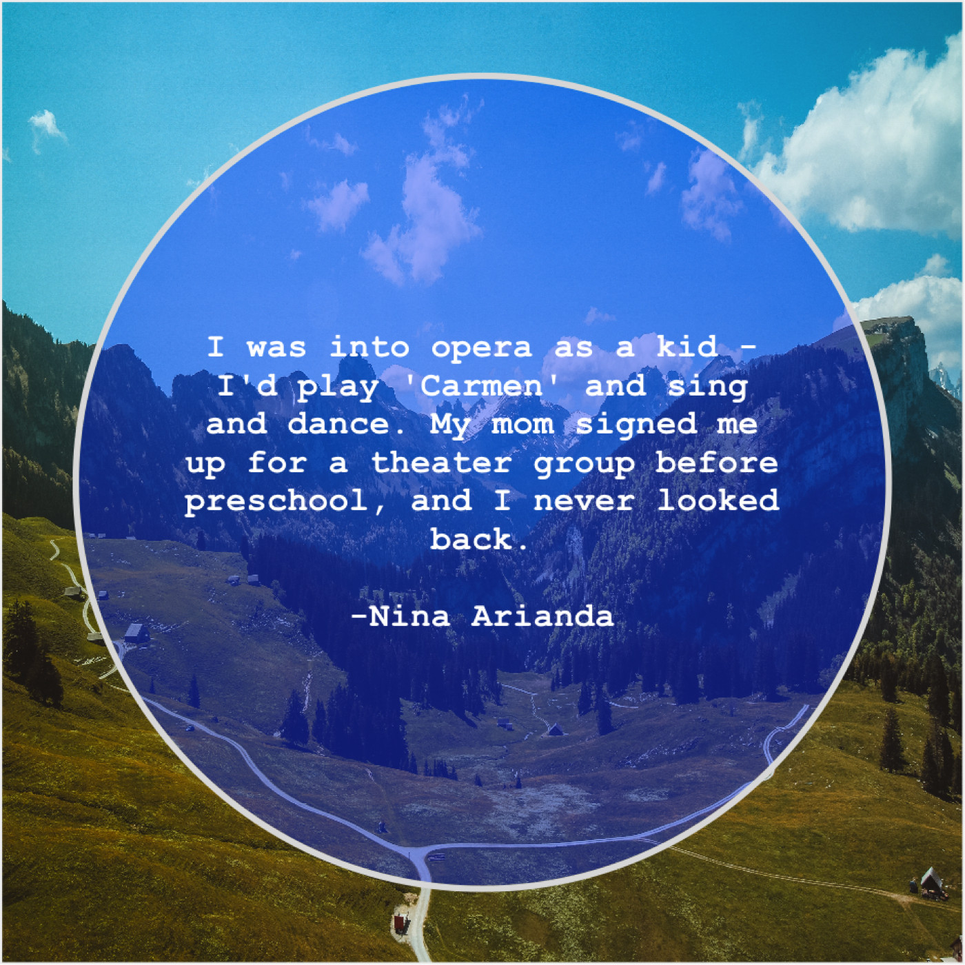 Nina Arianda Nina Arianda – I was into opera as… December 11, 2018 admin “I was into opera as a kid – I’d play ‘Carmen’ and sing and dance. My mom signed me up for a theater group before preschool, and I never looked back.”-Nina Arianda