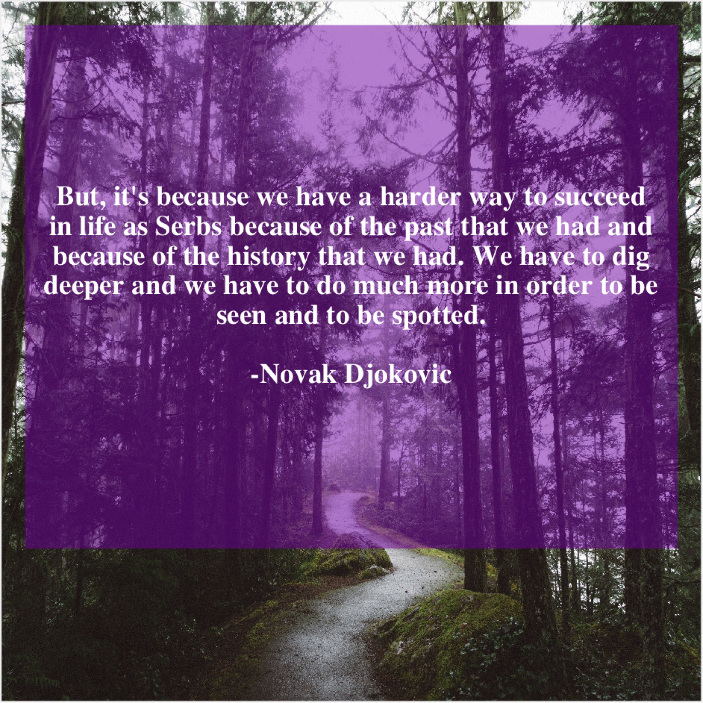 Novak Djokovic Novak Djokovic – But, it’s because we have… October 10, 2019 admin “But, it’s because we have a harder way to succeed in life as Serbs because of the past that we had and because of the history that we had. We have to dig deeper and we have to do much more in order to be seen and to be spotted.”-Novak Djokovic