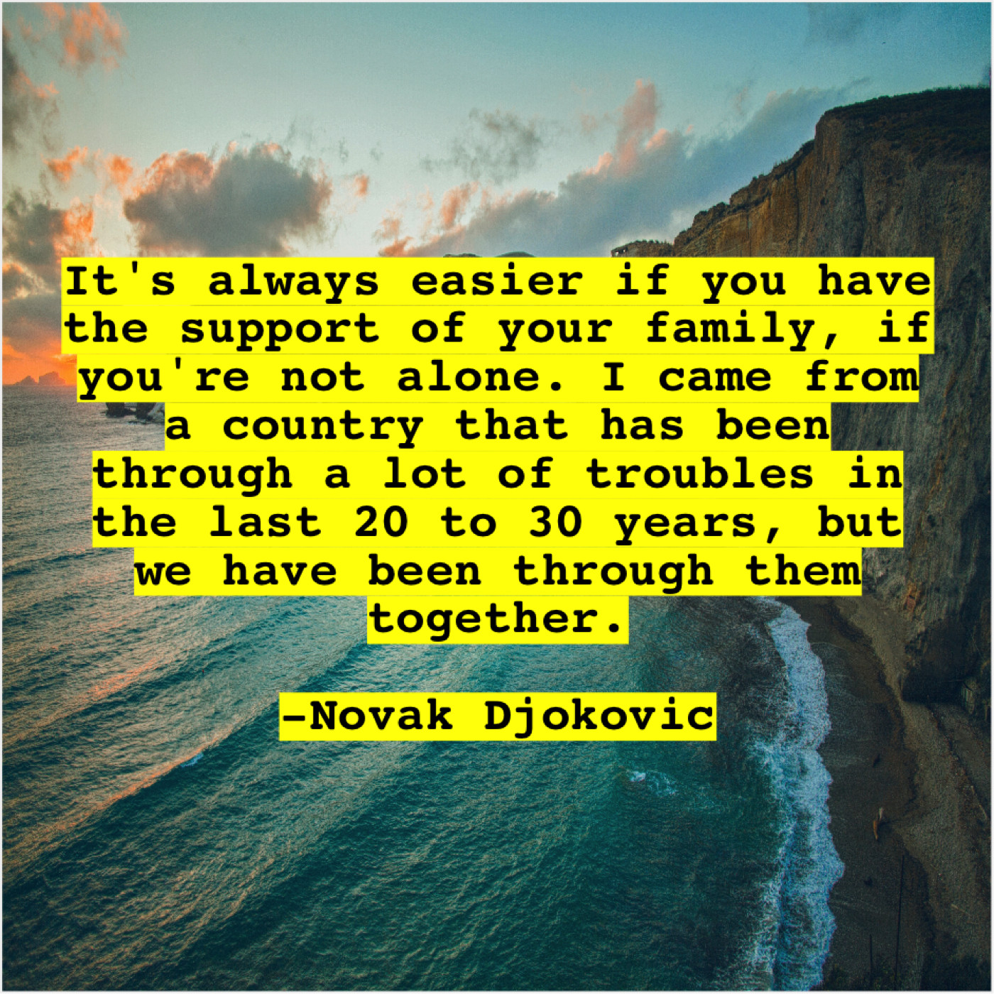 Novak Djokovic Novak Djokovic – It’s always easier if you… September 28, 2019 admin “It’s always easier if you have the support of your family, if you’re not alone. I came from a country that has been through a lot of troubles in the last 20 to 30 years, but we have been through them together.”-Novak Djokovic