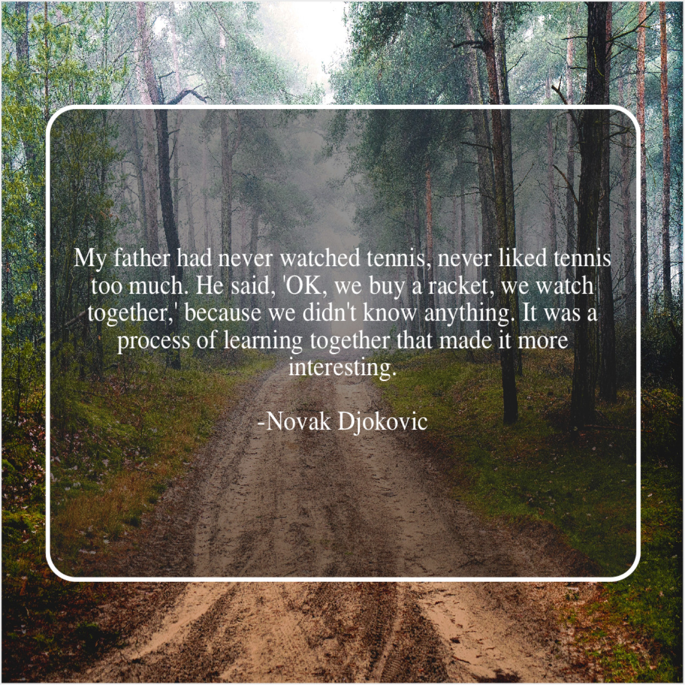 Novak Djokovic Novak Djokovic – My father had never watched… March 14, 2019 admin “My father had never watched tennis, never liked tennis too much. He said, ‘OK, we buy a racket, we watch together,’ because we didn’t know anything. It was a process of learning together that made it more interesting.”-Novak Djokovic