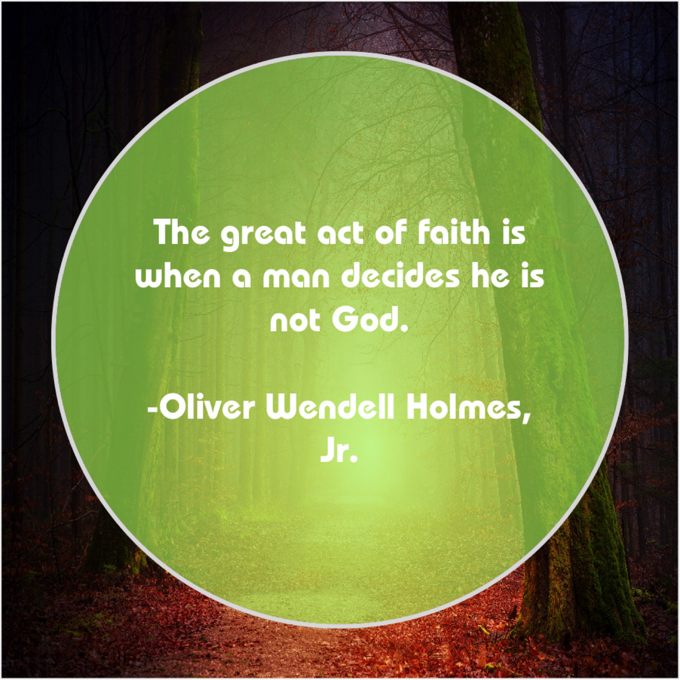 Oliver Wendell Holmes, Jr. Oliver Wendell Holmes, Jr. – The great act of faith… October 2, 2019 admin “The great act of faith is when a man decides he is not God.”-Oliver Wendell Holmes, Jr.