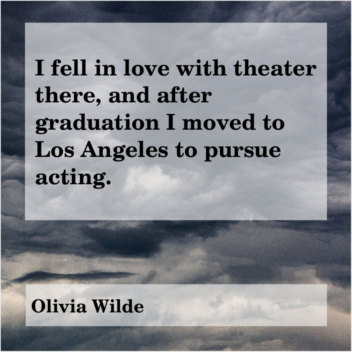 Olivia Wilde Olivia Wilde – I fell in love with… July 23, 2019 admin “I fell in love with theater there, and after graduation I moved to Los Angeles to pursue acting.”-Olivia Wilde