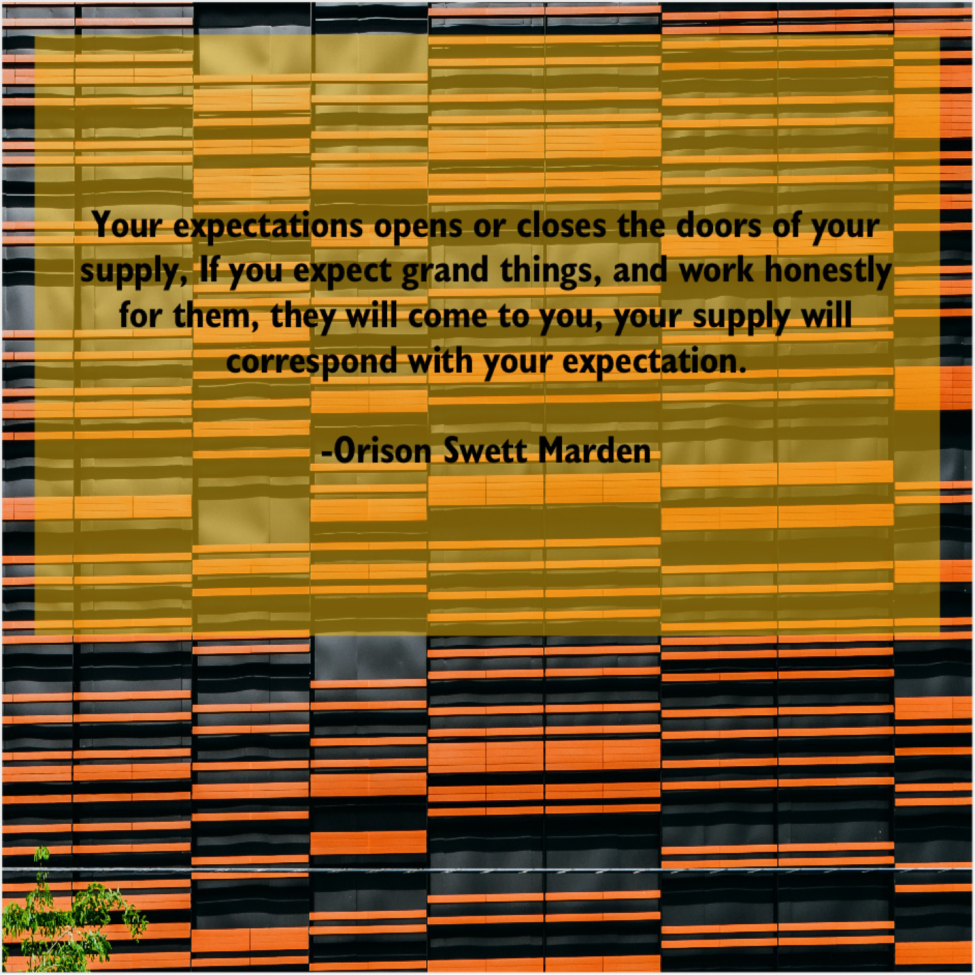 Orison Swett Marden Orison Swett Marden – Your expectations opens or closes… June 12, 2019 admin “Your expectations opens or closes the doors of your supply, If you expect grand things, and work honestly for them, they will come to you, your supply will correspond with your expectation.”-Orison Swett Marden