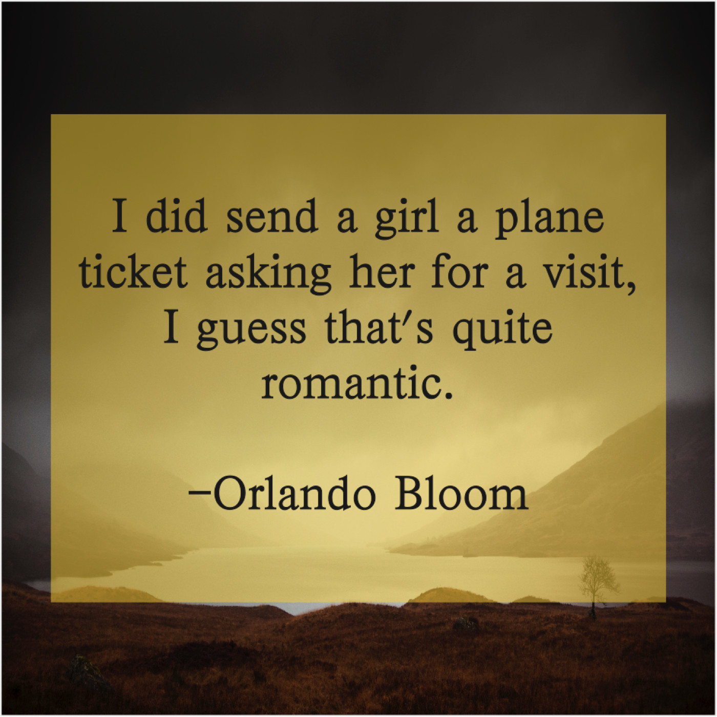 Orlando Bloom Orlando Bloom – I did send a girl… December 9, 2018 admin “I did send a girl a plane ticket asking her for a visit, I guess that’s quite romantic.”-Orlando Bloom