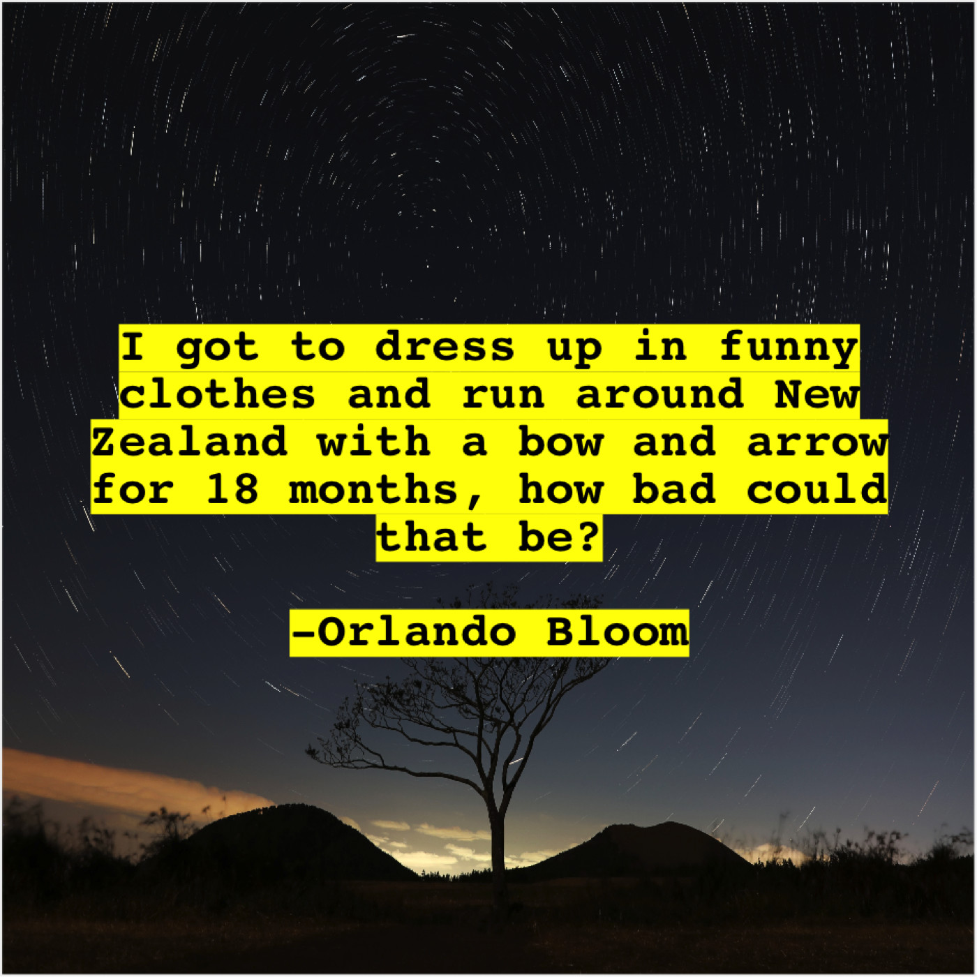 Orlando Bloom Orlando Bloom – I got to dress up… October 21, 2019 admin “I got to dress up in funny clothes and run around New Zealand with a bow and arrow for 18 months, how bad could that be?”-Orlando Bloom