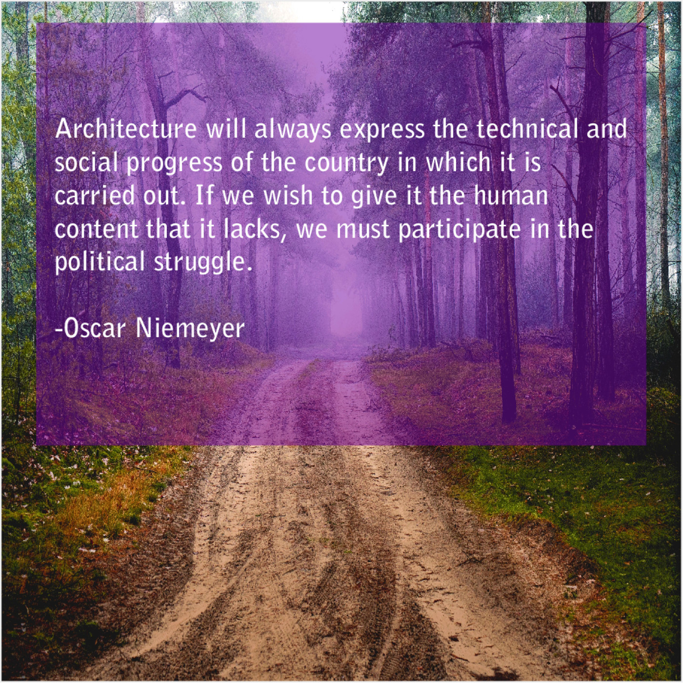 Oscar Niemeyer Oscar Niemeyer – Architecture will always express the… November 20, 2018 admin “Architecture will always express the technical and social progress of the country in which it is carried out. If we wish to give it the human content that it lacks, we must participate in the political struggle.”-Oscar Niemeyer