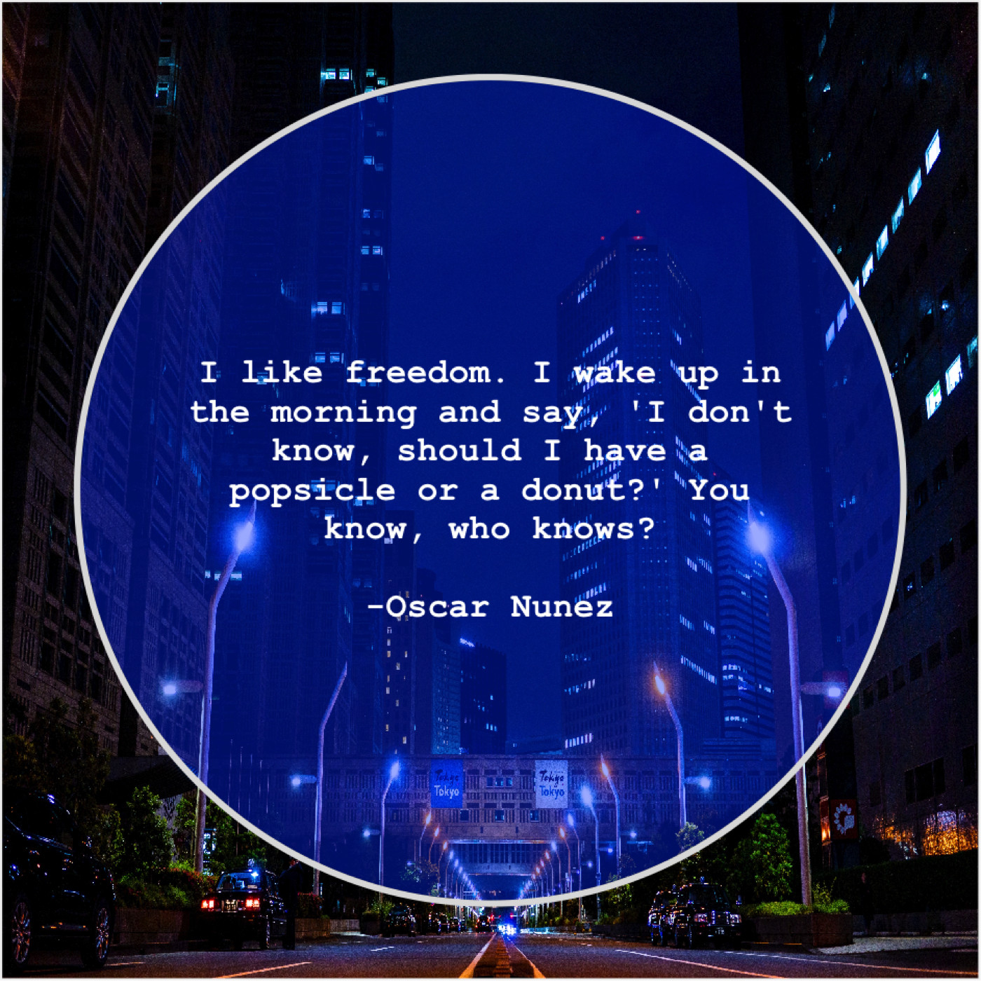 Oscar Nunez Oscar Nunez – I like freedom. I wake… May 19, 2019 admin “I like freedom. I wake up in the morning and say, ‘I don’t know, should I have a popsicle or a donut?’ You know, who knows?”-Oscar Nunez