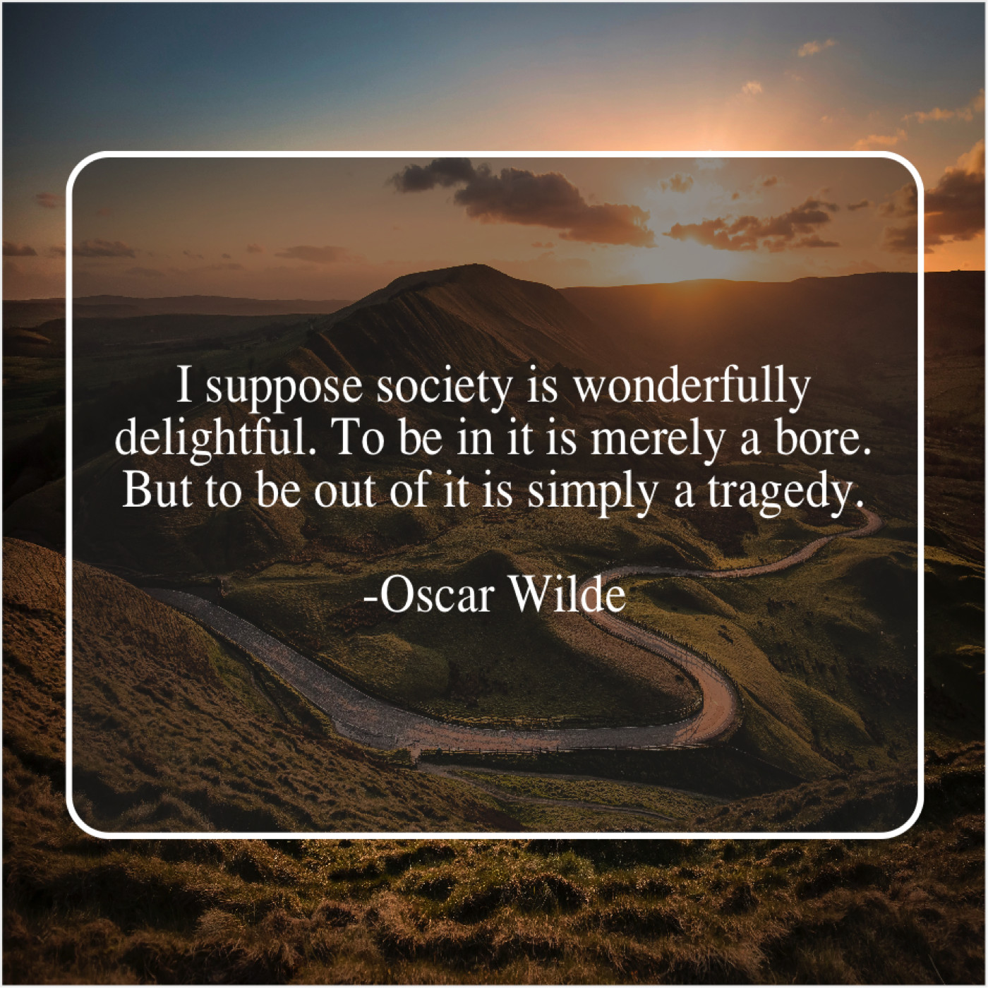 “I suppose society is wonderfully delightful. To be in it is merely a bore. But to be out of it is simply a tragedy.”