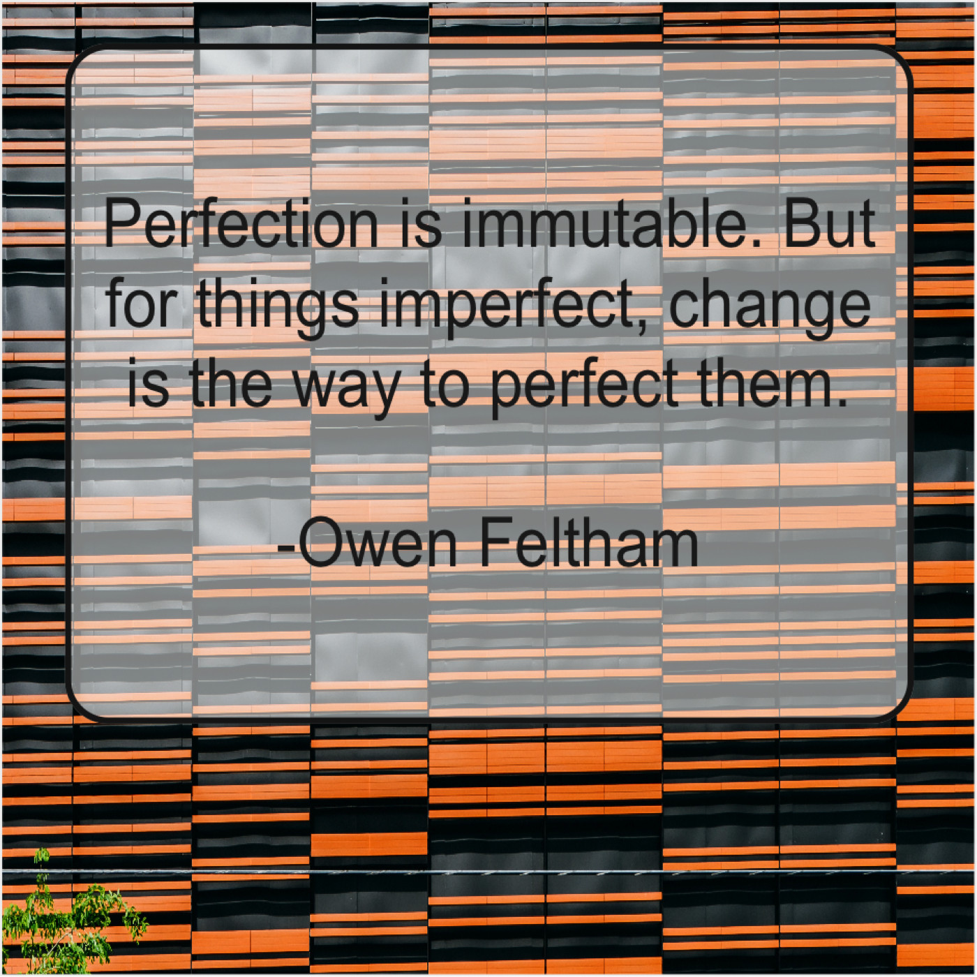 Owen Feltham Owen Feltham – Perfection is immutable. But for… October 22, 2019 admin “Perfection is immutable. But for things imperfect, change is the way to perfect them.”-Owen Feltham