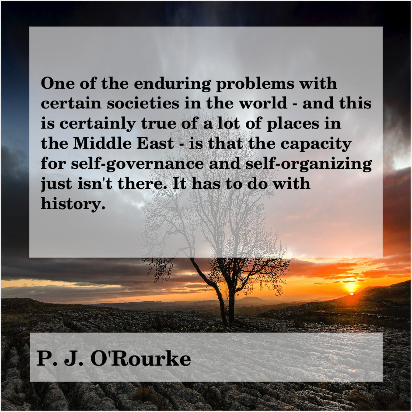 “One of the enduring problems with certain societies in the world – and this is certainly true of a lot of places in the Middle East – is that the capacity for self-governance and self-organizing just isn’t there. It has to do with history.”