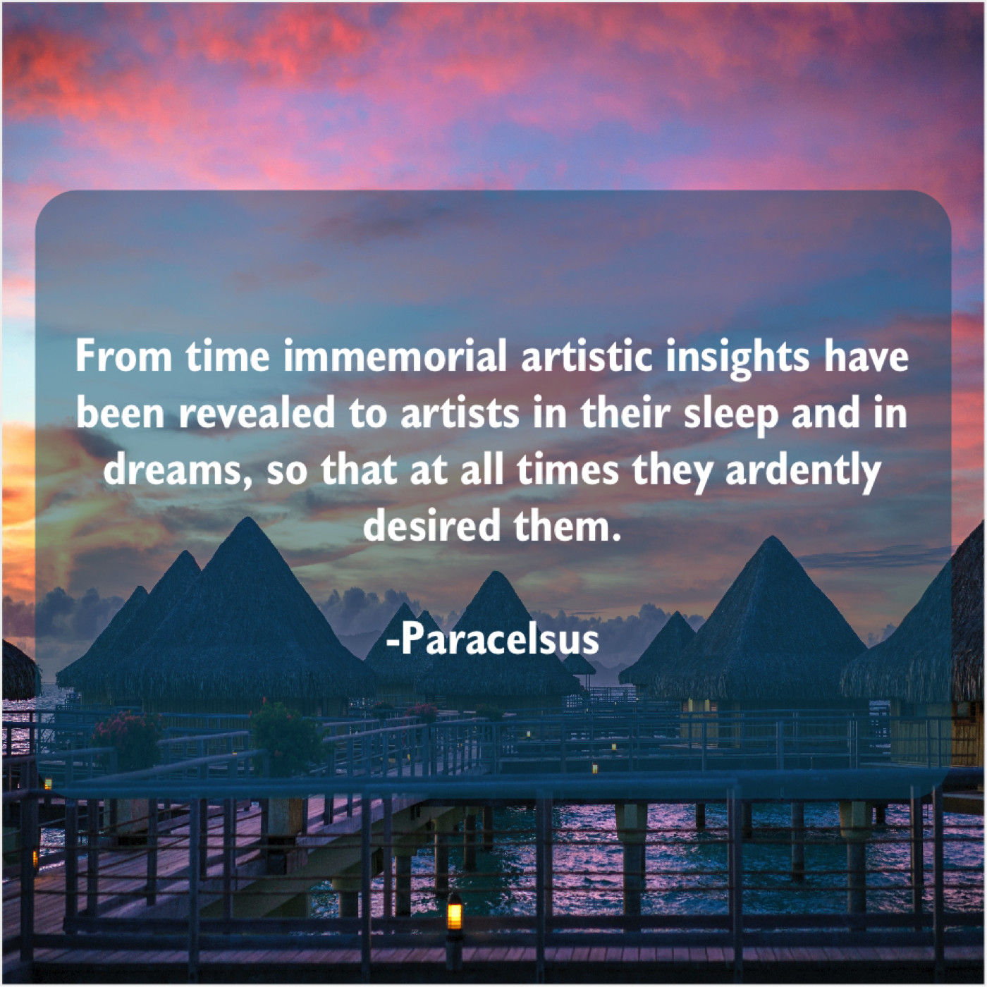 Paracelsus Paracelsus – From time immemorial artistic insights… May 9, 2019 admin “From time immemorial artistic insights have been revealed to artists in their sleep and in dreams, so that at all times they ardently desired them.”-Paracelsus