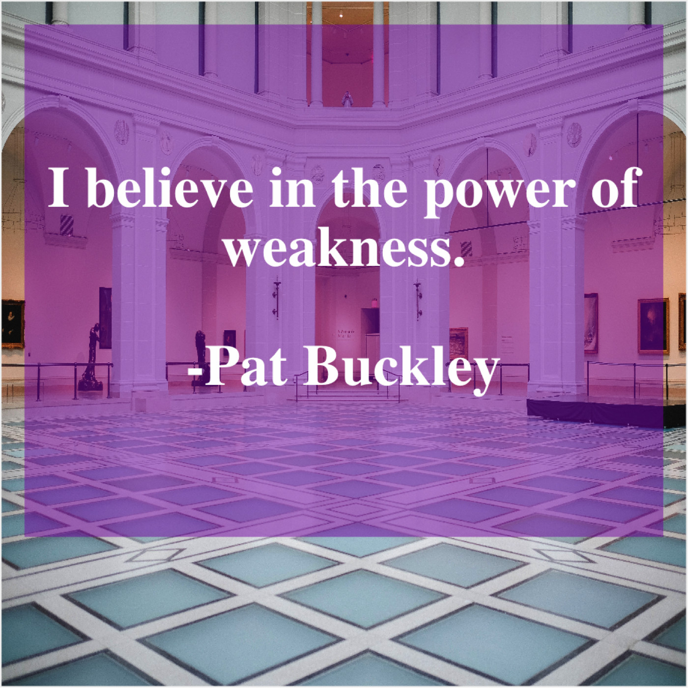 Pat Buckley Pat Buckley – I believe in the power… August 31, 2019 admin “I believe in the power of weakness.”-Pat Buckley