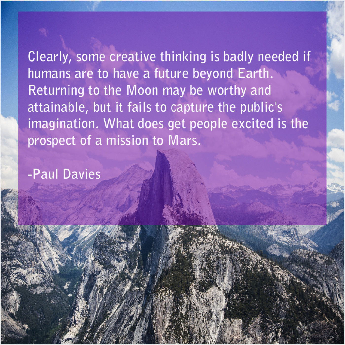 “Clearly, some creative thinking is badly needed if humans are to have a future beyond Earth. Returning to the Moon may be worthy and attainable, but it fails to capture the public’s imagination. What does get people excited is the prospect of a mission to Mars.”