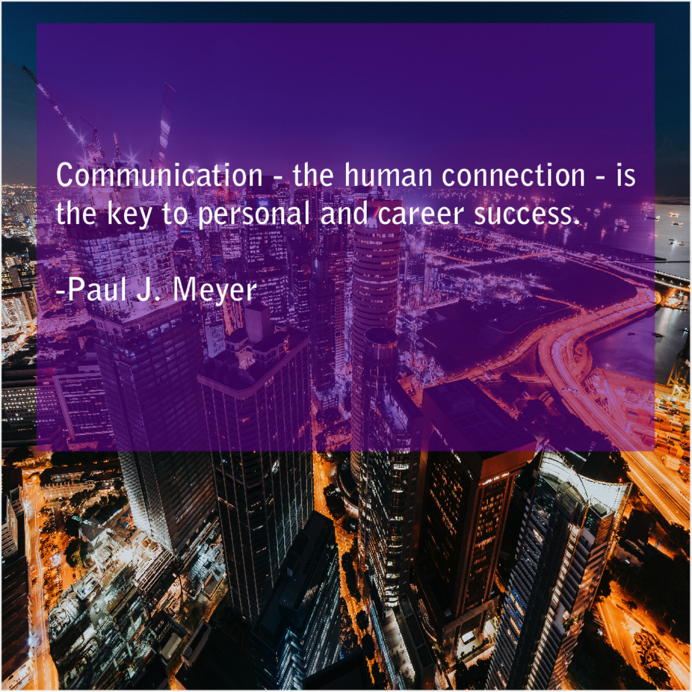 Paul J. Meyer Paul J. Meyer – Communication – the human connection – is… August 23, 2019 admin “Communication – the human connection – is the key to personal and career success.”-Paul J. Meyer