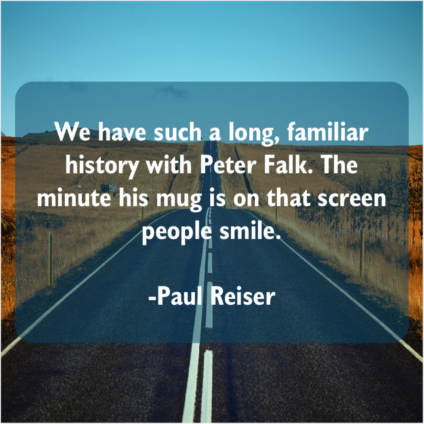 Paul Reiser Paul Reiser – We have such a long… October 20, 2019 admin “We have such a long, familiar history with Peter Falk. The minute his mug is on that screen people smile.”-Paul Reiser
