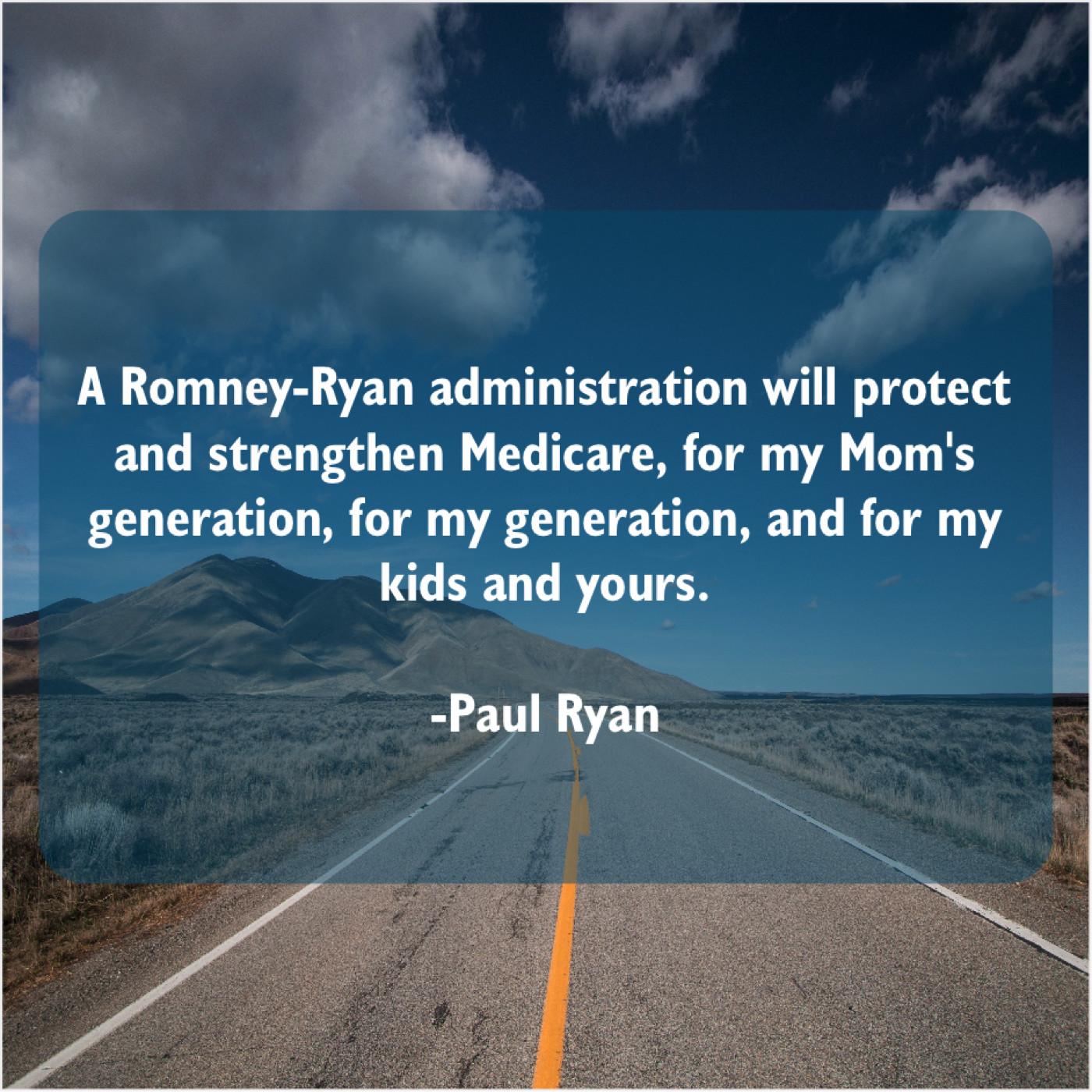 Paul Ryan Paul Ryan – A Romney-Ryan administration will… September 8, 2019 admin “A Romney-Ryan administration will protect and strengthen Medicare, for my Mom’s generation, for my generation, and for my kids and yours.”-Paul Ryan