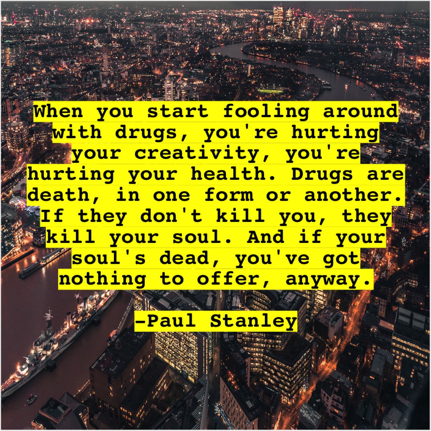 “When you start fooling around with drugs, you’re hurting your creativity, you’re hurting your health. Drugs are death, in one form or another. If they don’t kill you, they kill your soul. And if your soul’s dead, you’ve got nothing to offer, anyway.”