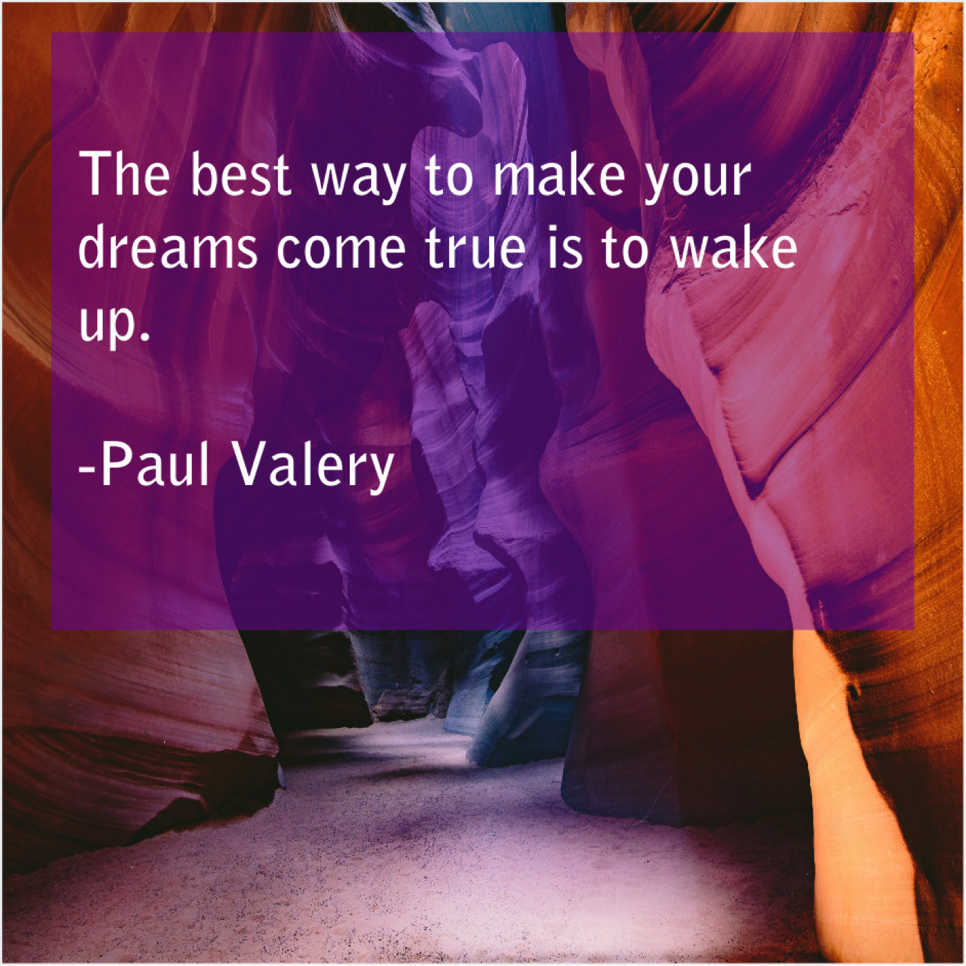 Paul Valery Paul Valery – The best way to make… September 18, 2019 admin “The best way to make your dreams come true is to wake up.”-Paul Valery