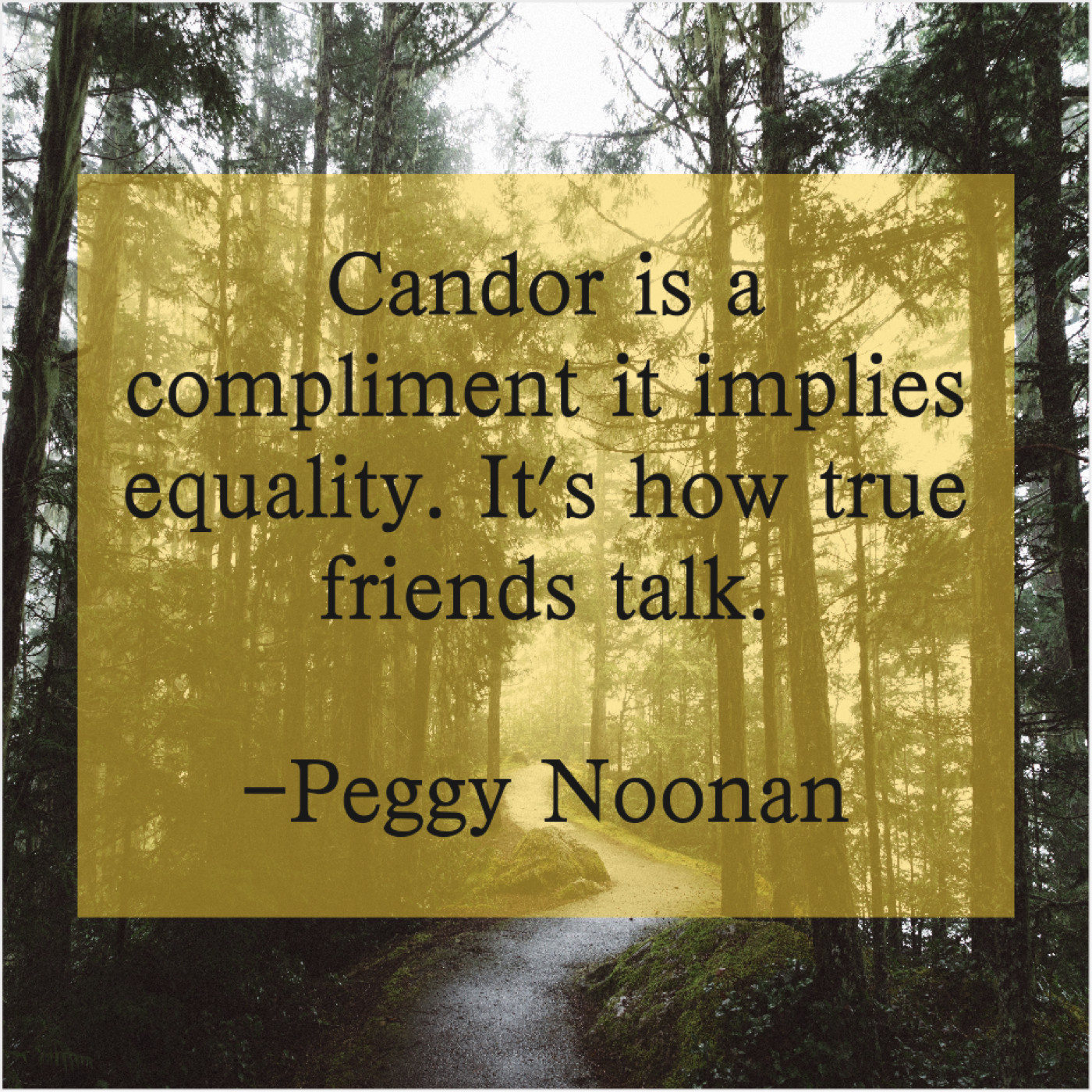 Peggy Noonan Peggy Noonan – Candor is a compliment it… September 12, 2019 admin “Candor is a compliment it implies equality. It’s how true friends talk.”-Peggy Noonan