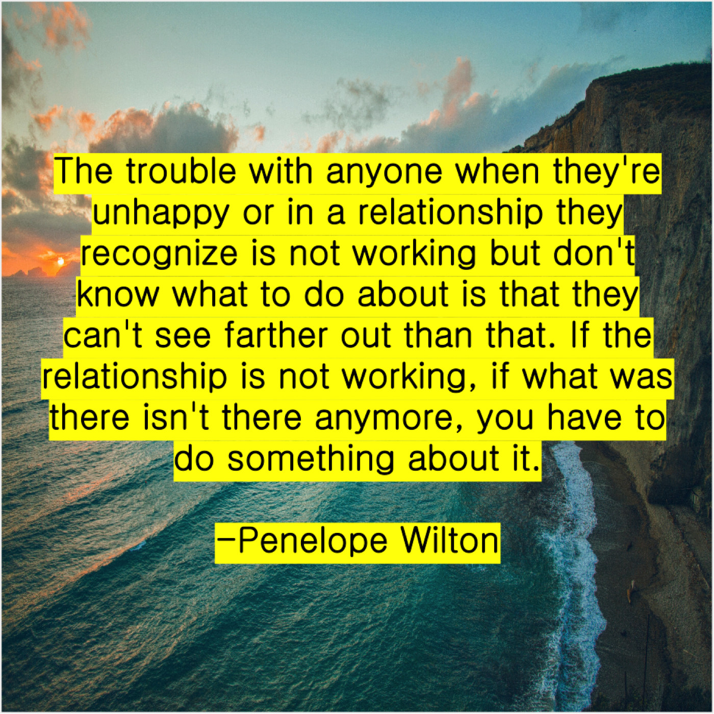 “The trouble with anyone when they’re unhappy or in a relationship they recognize is not working but don’t know what to do about is that they can’t see farther out than that. If the relationship is not working, if what was there isn’t there anymore, you have to do something about it.”