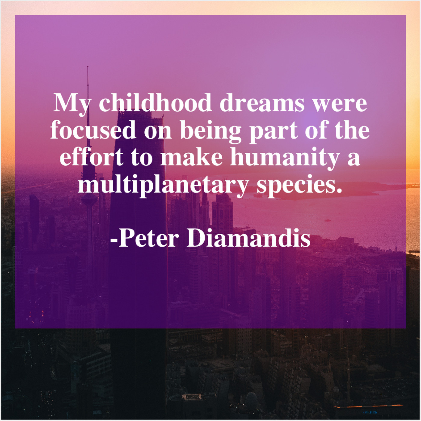 Peter Diamandis Peter Diamandis – My childhood dreams were focused… June 2, 2019 admin “My childhood dreams were focused on being part of the effort to make humanity a multiplanetary species.”-Peter Diamandis