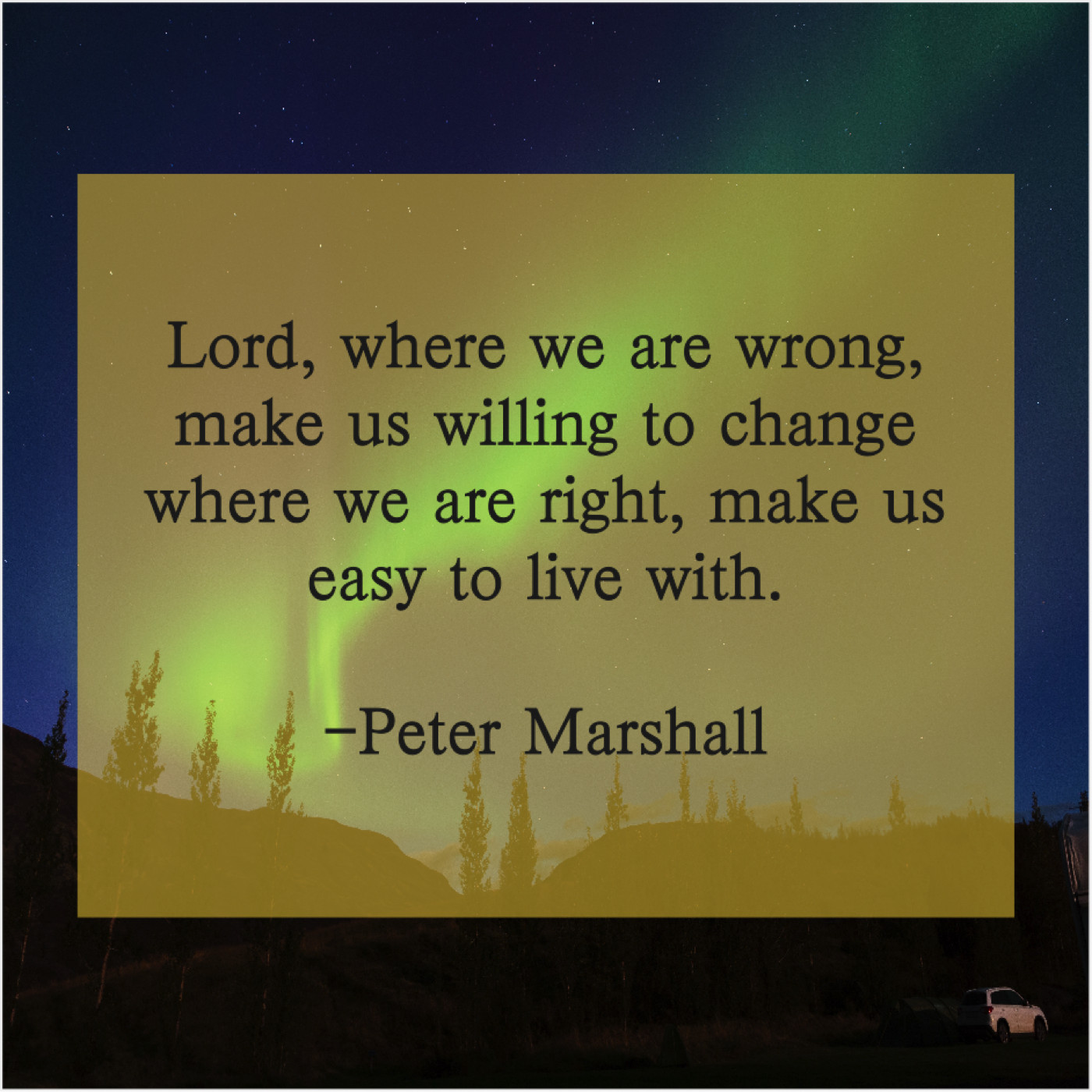 Peter Marshall Peter Marshall – Lord, where we are wrong… January 29, 2019 admin “Lord, where we are wrong, make us willing to change where we are right, make us easy to live with.”-Peter Marshall