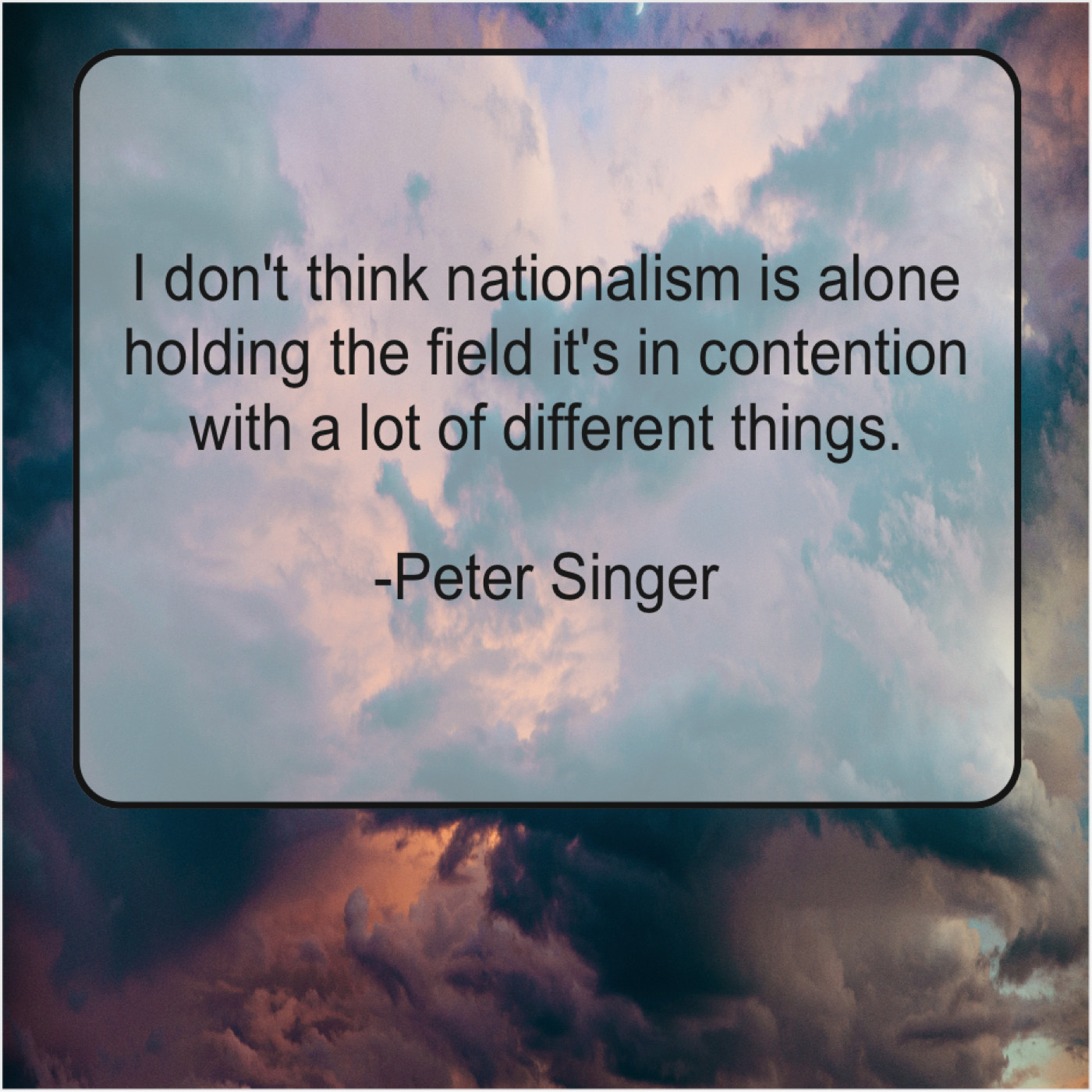 Peter Singer Peter Singer – I don’t think nationalism is… April 8, 2019 admin “I don’t think nationalism is alone holding the field it’s in contention with a lot of different things.”-Peter Singer
