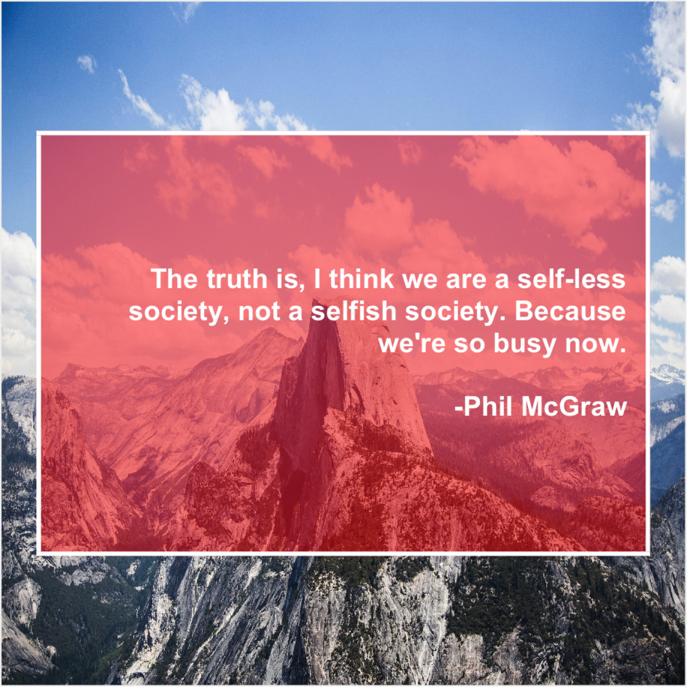 Phil McGraw Phil McGraw – The truth is, I think… October 3, 2019 admin “The truth is, I think we are a self-less society, not a selfish society. Because we’re so busy now.”-Phil McGraw
