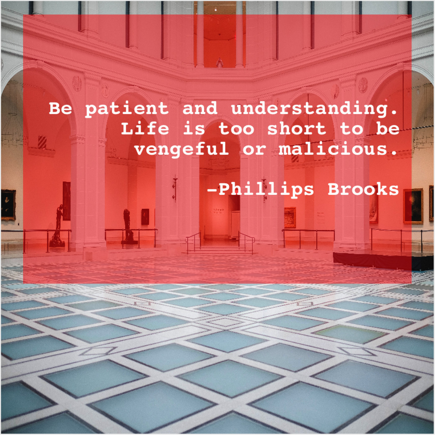 Phillips Brooks Phillips Brooks – Be patient and understanding. Life… July 10, 2019 admin “Be patient and understanding. Life is too short to be vengeful or malicious.”-Phillips Brooks