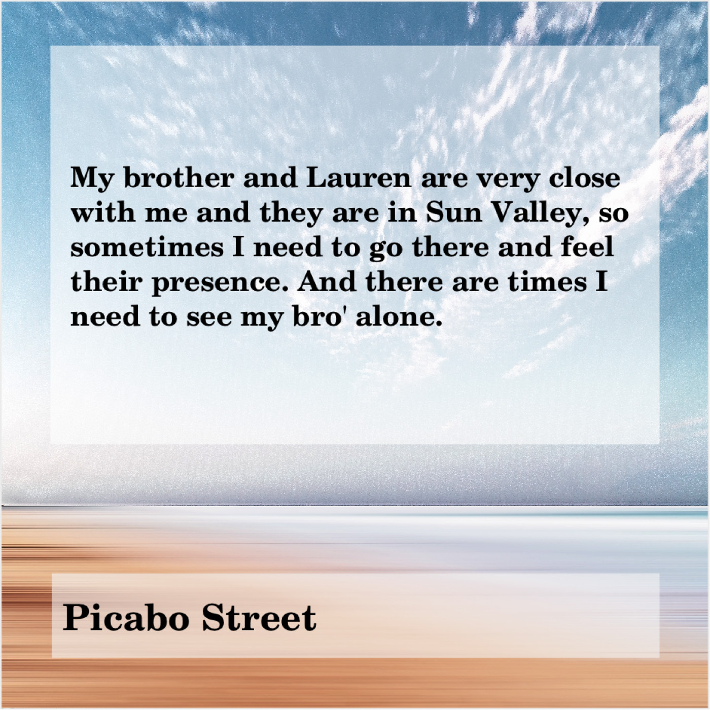Picabo Street Picabo Street – My brother and Lauren are… May 16, 2019 admin “My brother and Lauren are very close with me and they are in Sun Valley, so sometimes I need to go there and feel their presence. And there are times I need to see my bro’ alone.”-Picabo Street