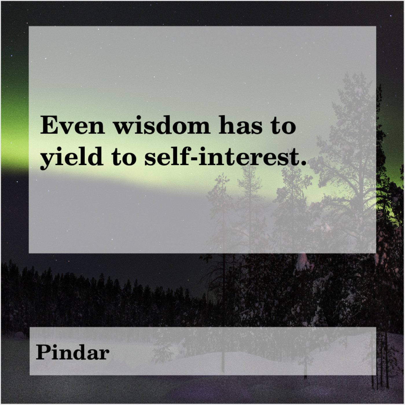 Pindar Pindar – Even wisdom has to yield… December 1, 2018 admin “Even wisdom has to yield to self-interest.”-Pindar