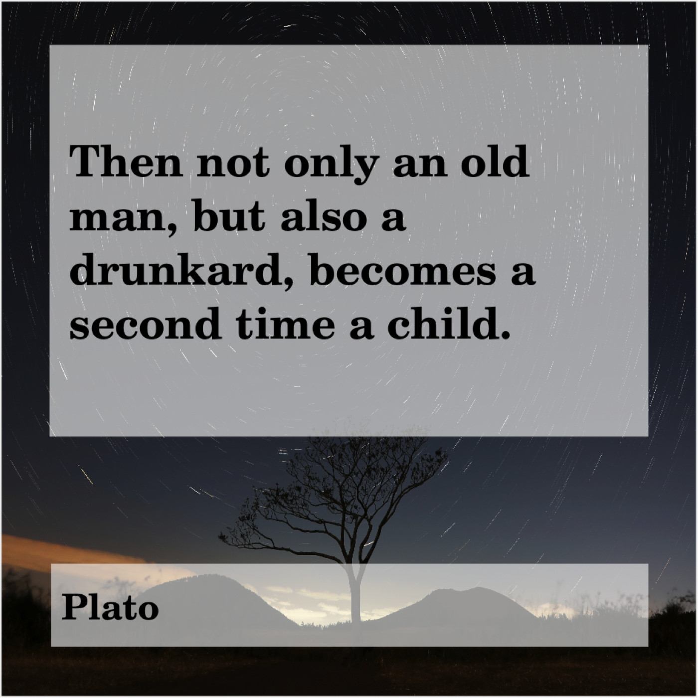 Plato Plato – Then not only an old… April 19, 2019 admin “Then not only an old man, but also a drunkard, becomes a second time a child.”-Plato
