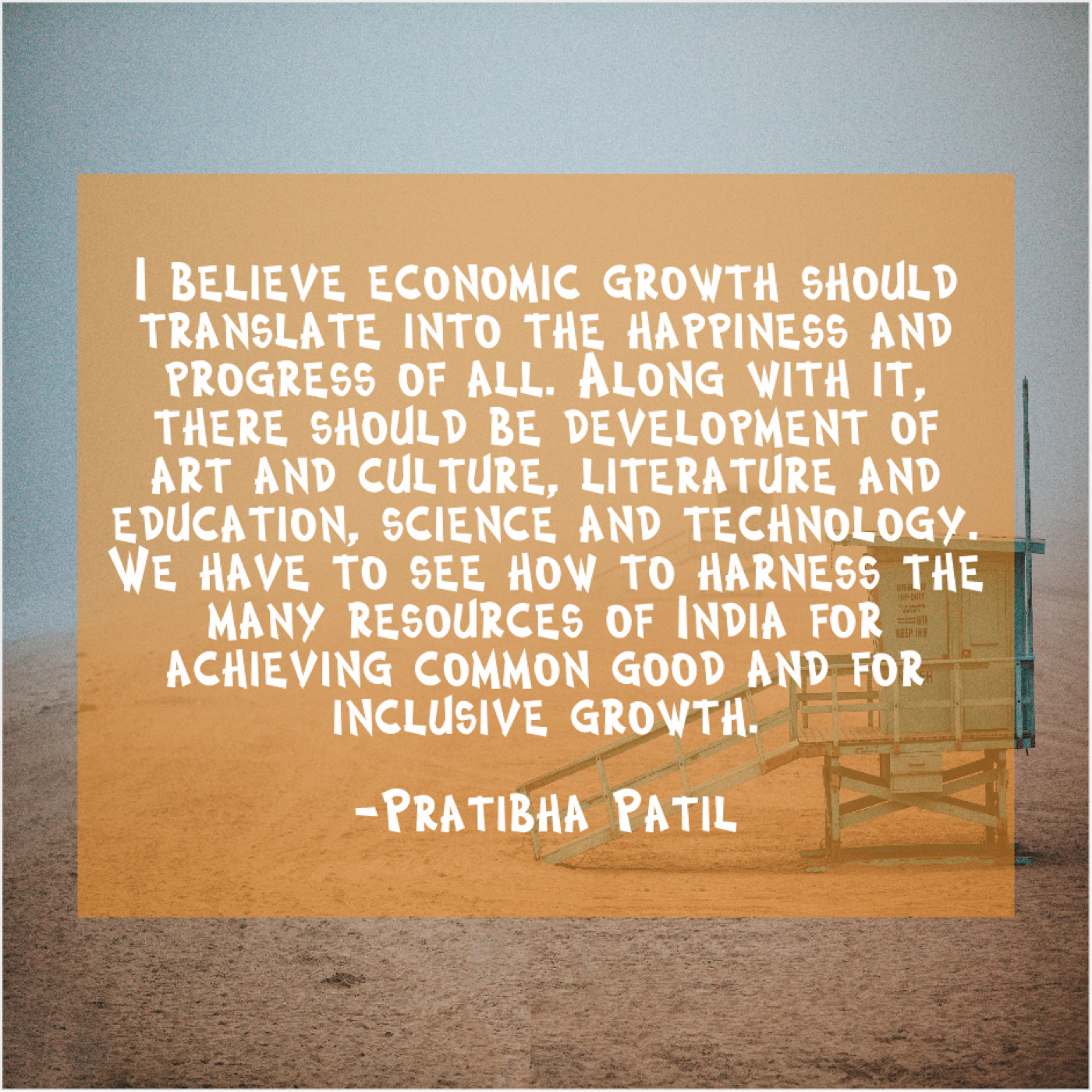 “I believe economic growth should translate into the happiness and progress of all. Along with it, there should be development of art and culture, literature and education, science and technology. We have to see how to harness the many resources of India for achieving common good and for inclusive growth.”
